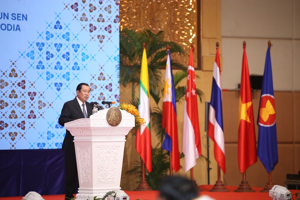 8月3日,柬埔寨首相洪森在首都金邊舉行的東盟外長(zhǎng)會(huì)議上發(fā)言。