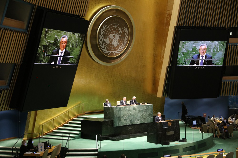 8月2日,在位于紐約的聯(lián)合國(guó)總部,外交部軍控司司長(zhǎng)傅聰在《不擴(kuò)散核武器條約》第十次審議大會(huì)一般性辯論中發(fā)言。