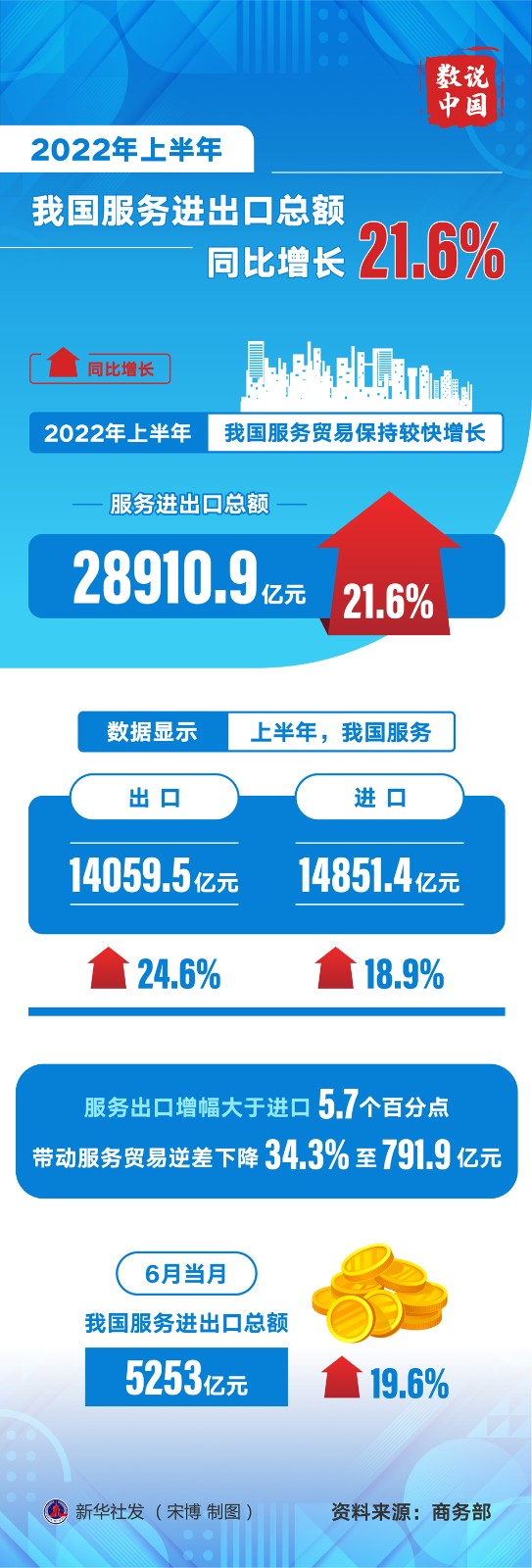 記者8月4日從商務(wù)部獲悉,上半年,我國服務(wù)貿(mào)易保持較快增長。服務(wù)進(jìn)出口總額28910.9億元,同比增長21.6%。
