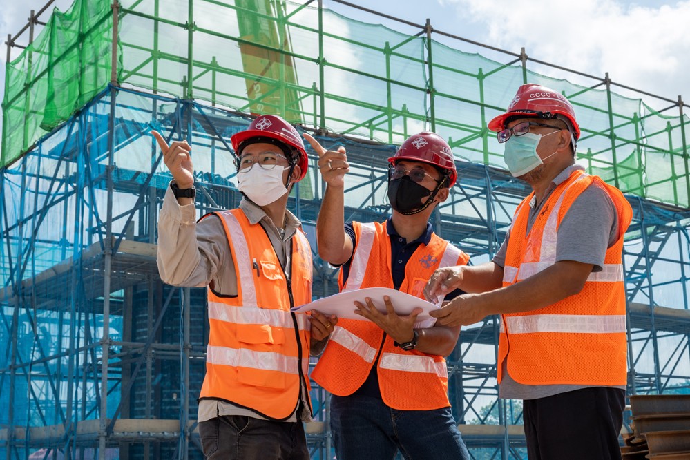 7月25日,西亞赫明(中)在位于馬來西亞彭亨州的馬東鐵項目六分部施工現場工作。