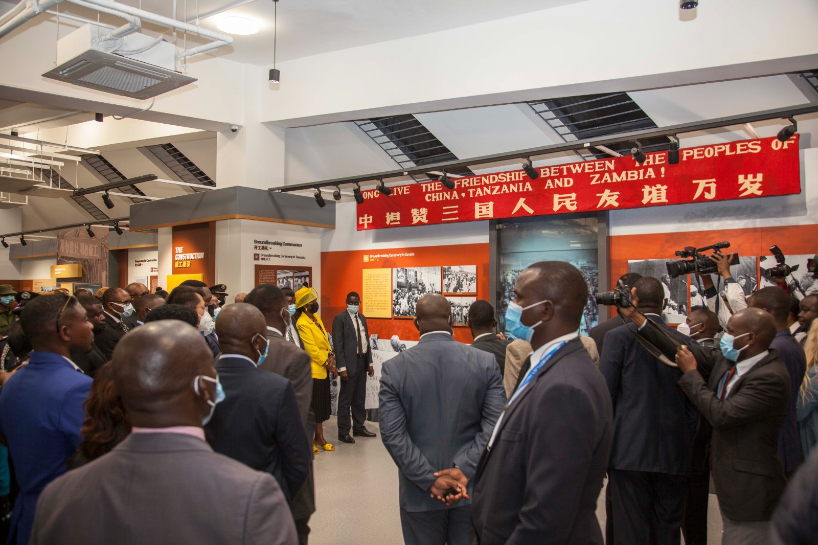 8月10日,在贊比亞盧薩卡省瓊圭地區(qū),來賓參觀坦贊鐵路紀念園內(nèi)的紀念館。