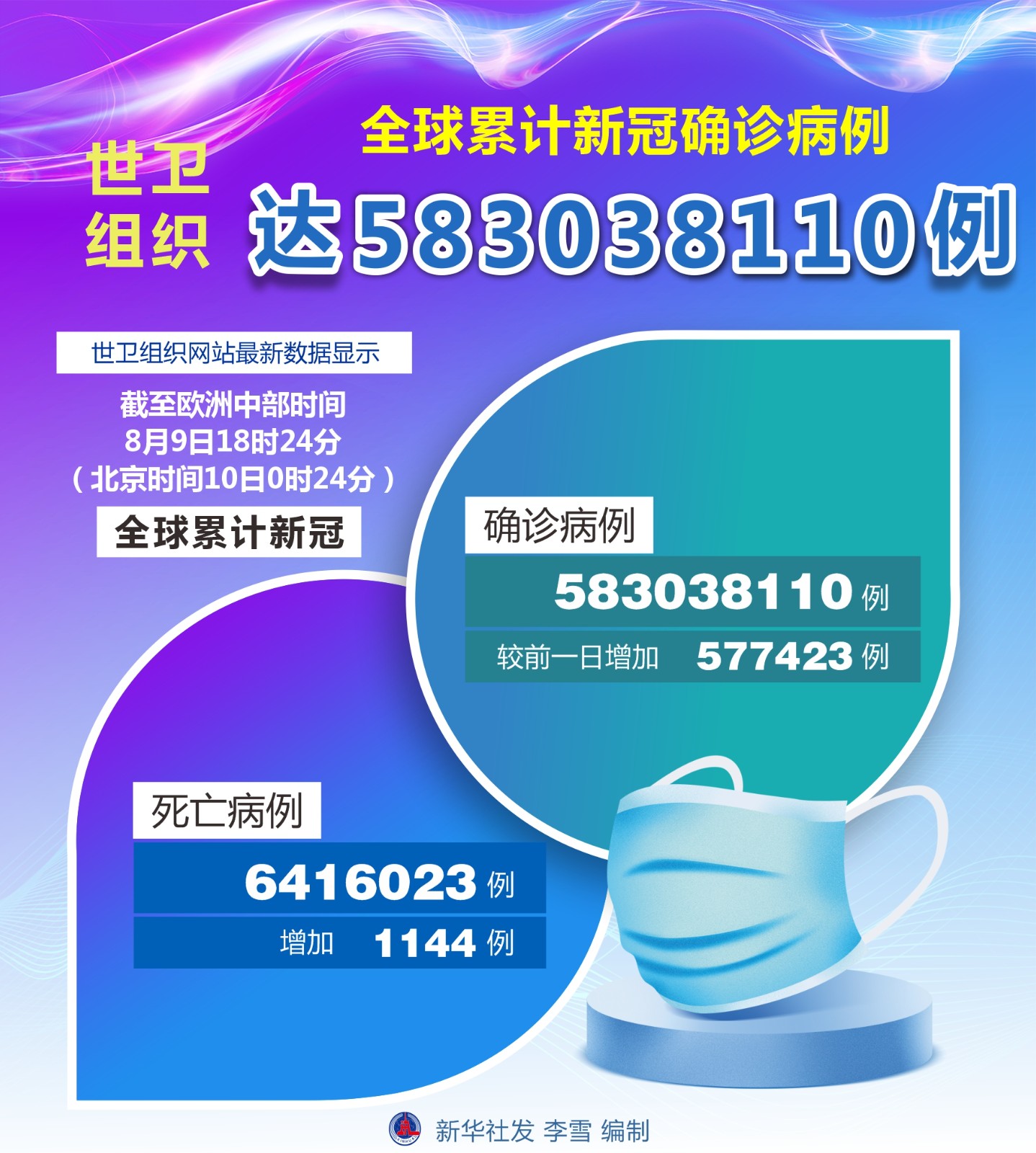 (圖表)世衛(wèi)組織:全球累計(jì)新冠確診病例達(dá)583038110例