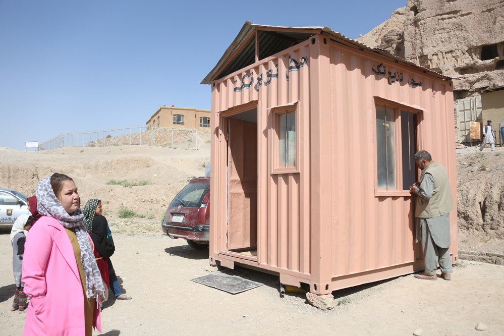 這是7月13日在阿富汗巴米揚(yáng)拍攝的文物保護(hù)工作站。