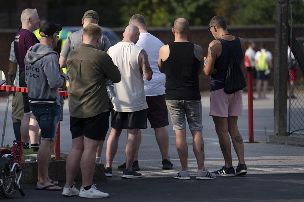 8月14日,人們?cè)谟?guó)曼徹斯特一處猴痘疫苗接種點(diǎn)外排隊(duì)等待接種疫苗。