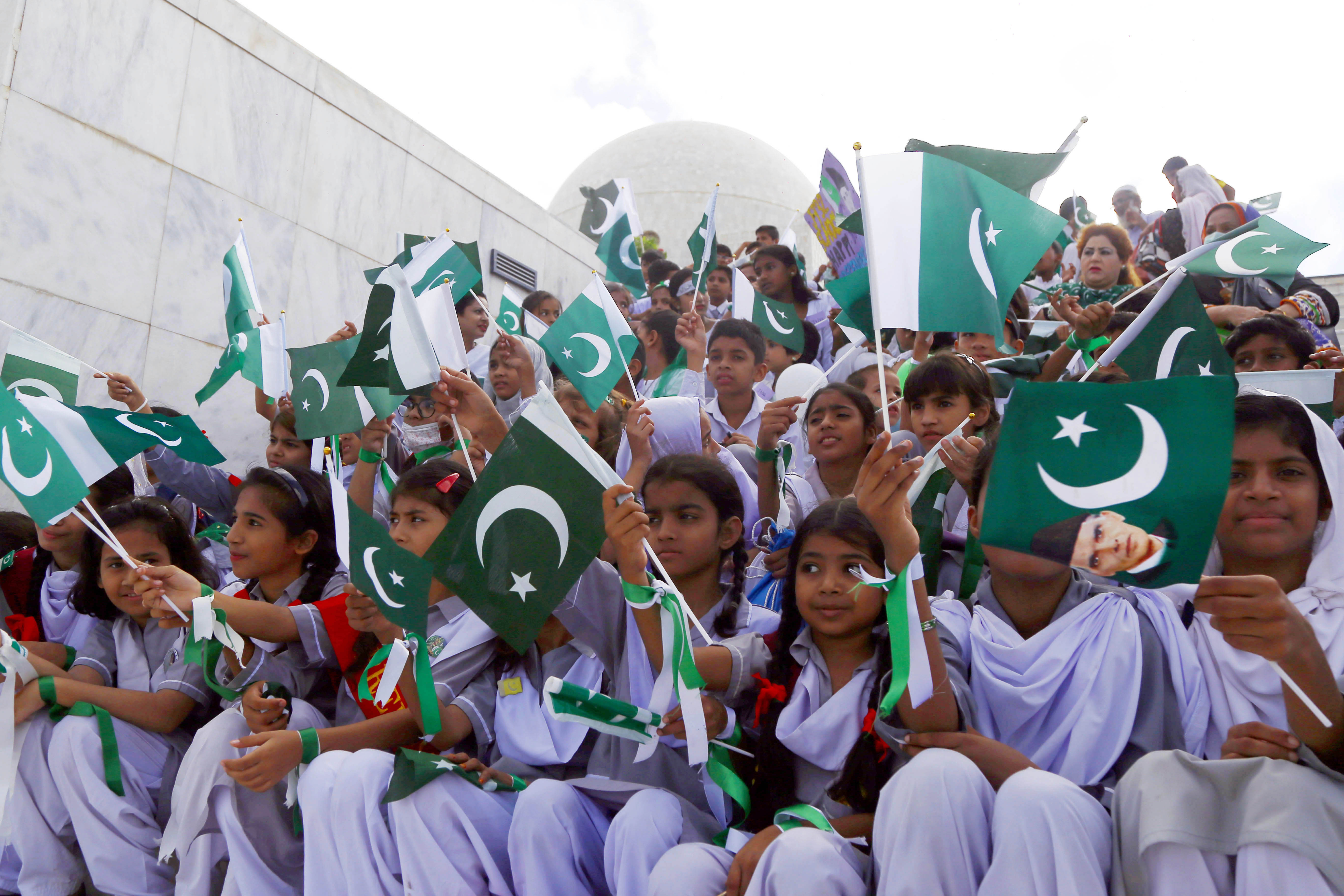 8月14日,學(xué)生在巴基斯坦卡拉奇參加獨(dú)立日慶祝活動(dòng)。