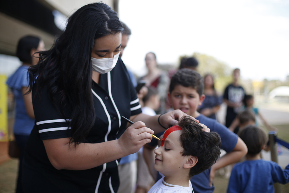 8月13日,在巴西首都巴西利亞舉辦的“中國一瞬”文化體驗周活動上,一名男孩體驗面部彩繪。