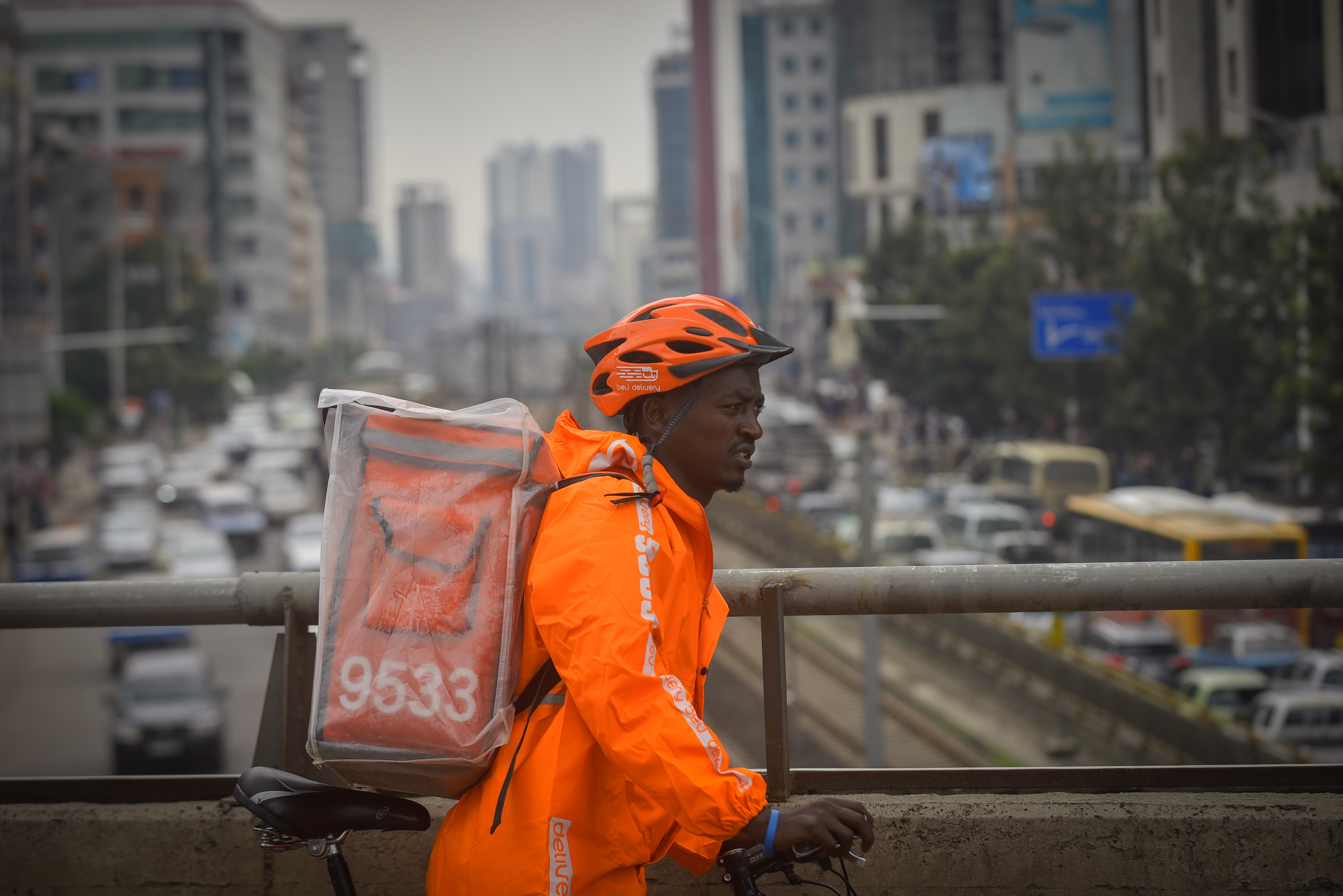在埃塞俄比亞首都亞的斯亞貝巴,外賣服務(wù)仍是一項新鮮事物。目前,大約400名外賣騎手正通過騎行改變著當(dāng)?shù)厮筒头绞健?/p>