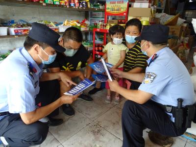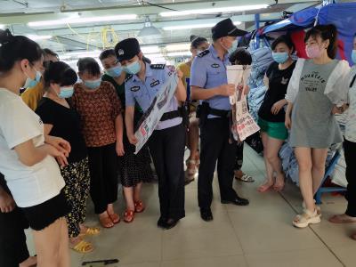 為加大防范網(wǎng)絡(luò)電信詐騙宣傳力度,安徽省蕪湖市公安局鏡湖分局各派出所成立“反詐宣傳”小分隊(duì),民警深入商家、企業(yè)、社區(qū)開(kāi)展“反詐宣傳進(jìn)萬(wàn)家,守護(hù)群眾錢(qián)袋子”主題宣教活動(dòng)。圖為8月2日,民警向轄區(qū)群眾宣傳防范詐騙知識(shí)。