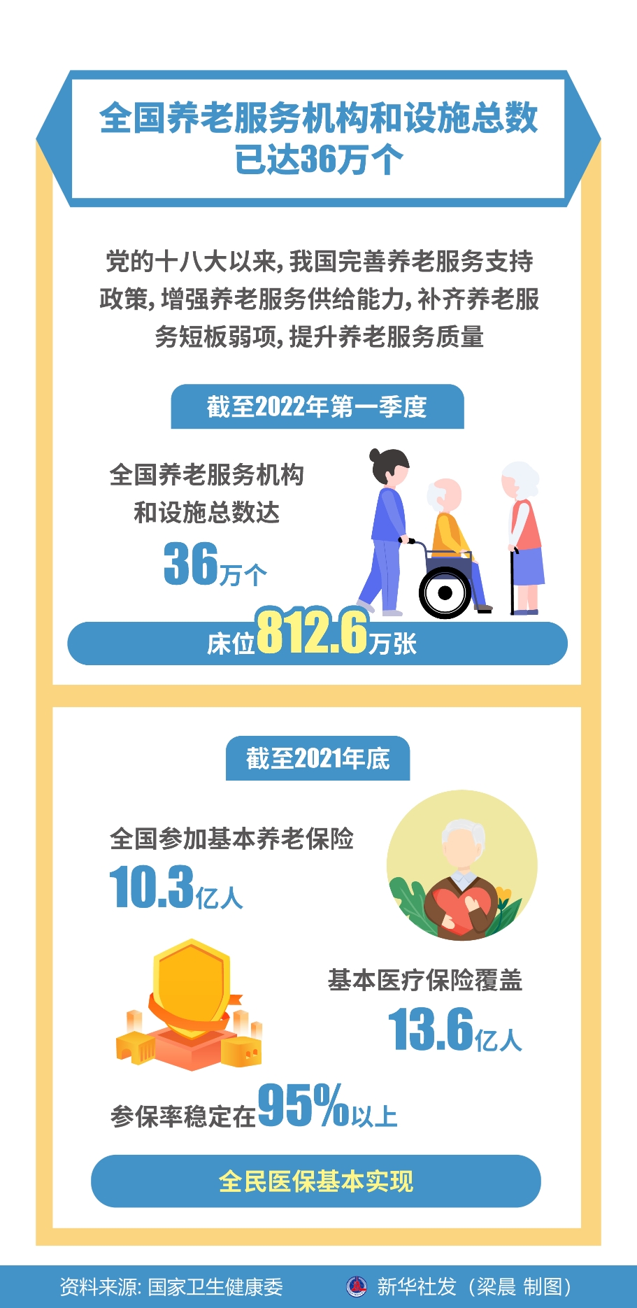 記者從國家衛(wèi)生健康委9月20日舉行的新聞發(fā)布會上了解到,黨的十八大以來,我國完善養(yǎng)老服務(wù)支持政策,增強(qiáng)養(yǎng)老服務(wù)供給能力,補(bǔ)齊養(yǎng)老服務(wù)短板弱項(xiàng),提升養(yǎng)老服務(wù)質(zhì)量。截至2022年第一季度,全國養(yǎng)老服務(wù)機(jī)構(gòu)和設(shè)施總數(shù)達(dá)36萬個(gè),床位812.6萬張。