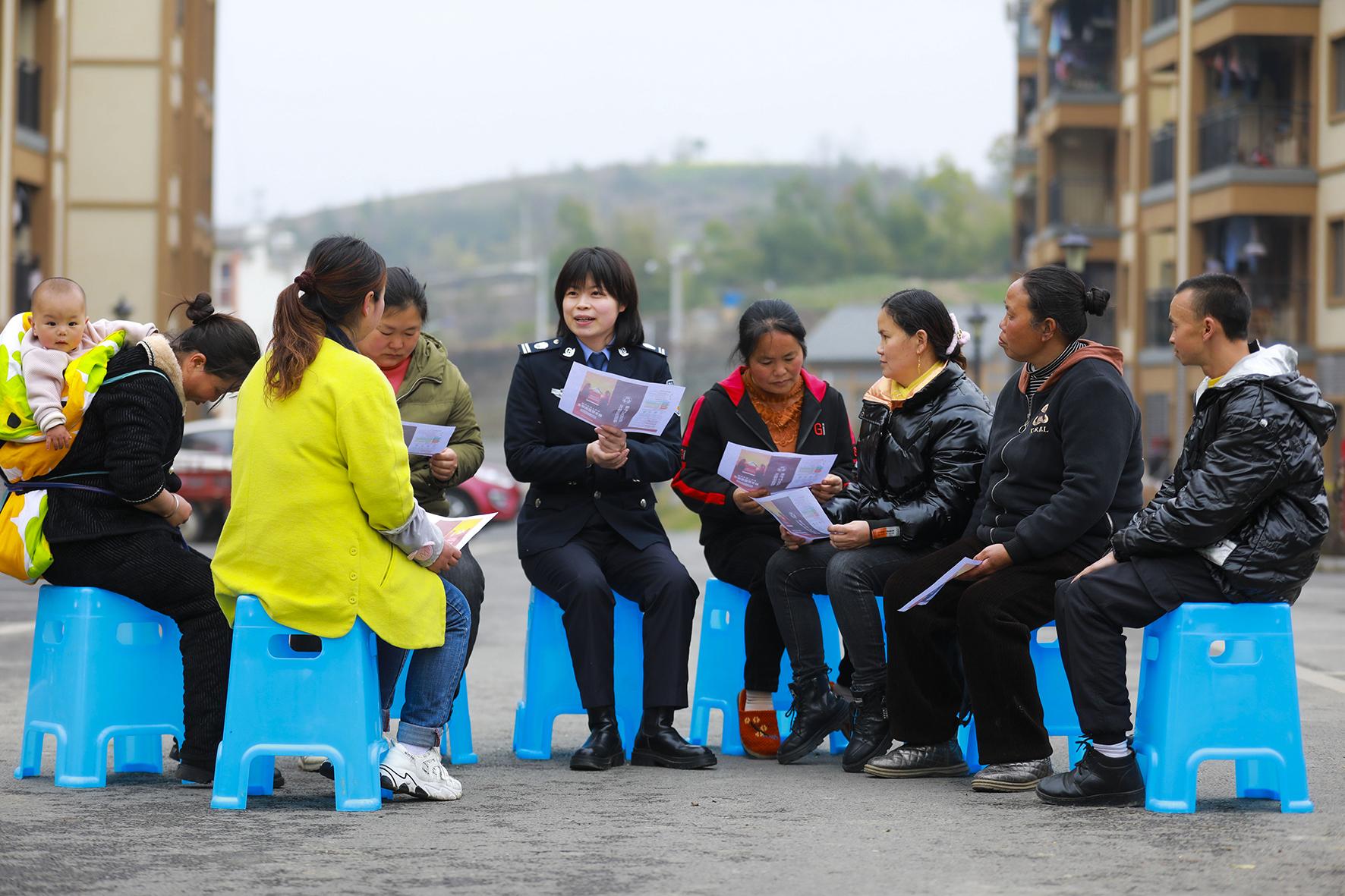 圖為律師志愿者向婦女群眾講解法律維權(quán)知識。