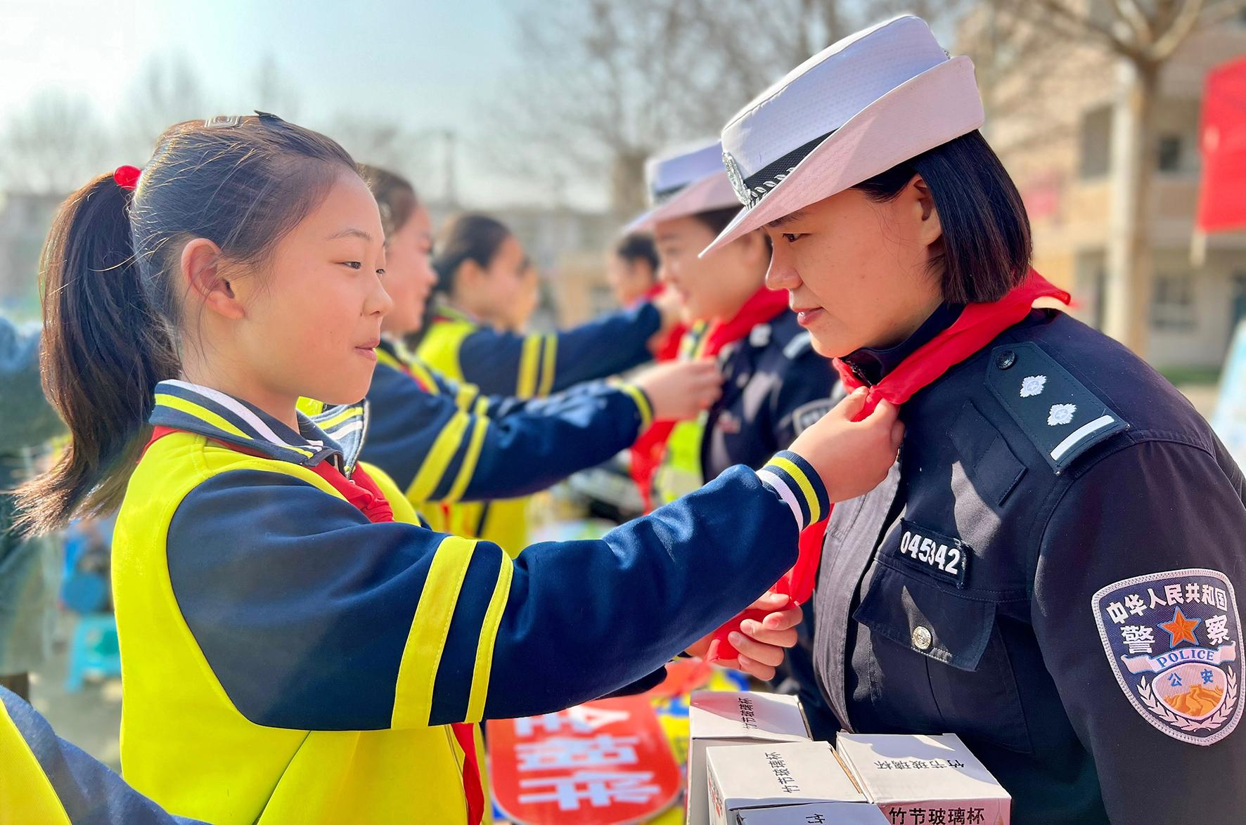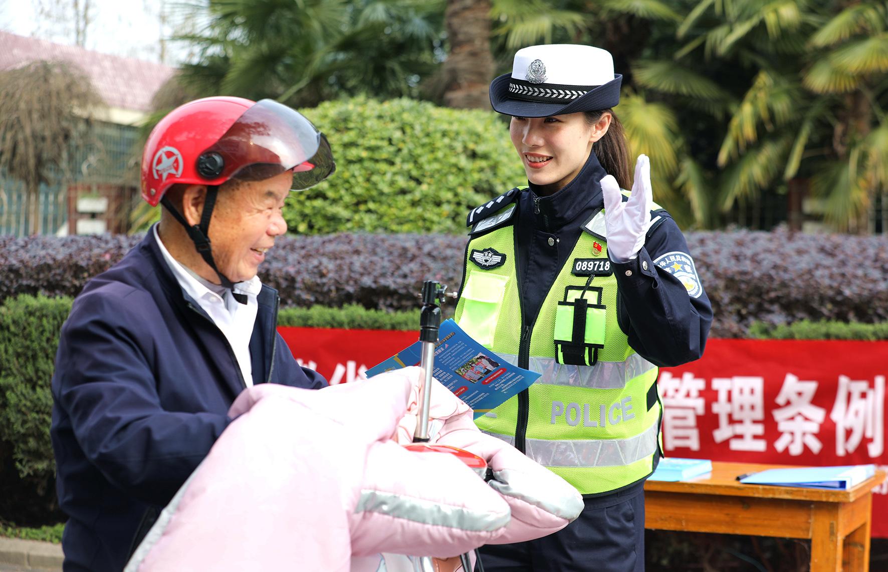 3月7日,陜西省渭南市蒲城縣公安局交通管理大隊(duì)女民警走進(jìn)祥塬小學(xué)開展交通安全“春季守護(hù)行動”。