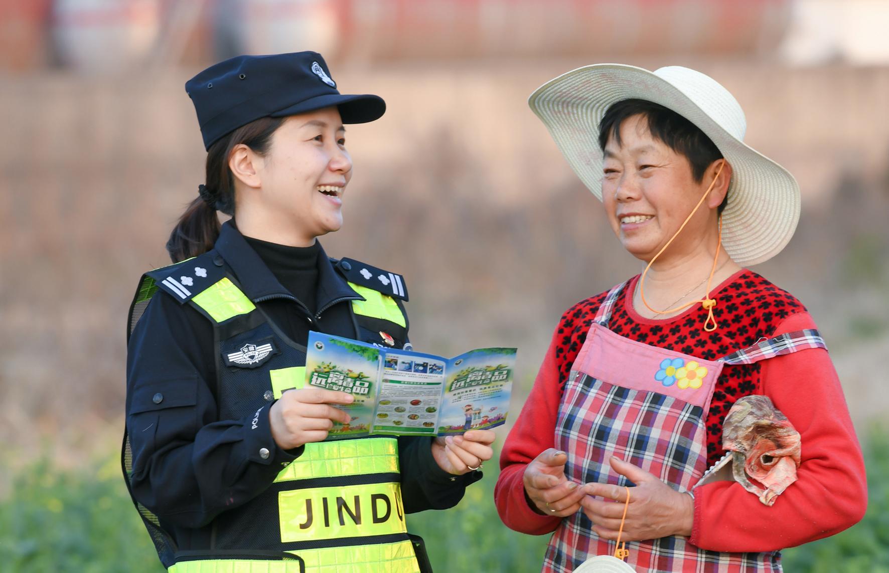 3月7日,安徽省馬鞍山市和縣公安局禁毒大隊(duì)女民警在田間開展“春季毒品源植物禁種”普法宣傳。