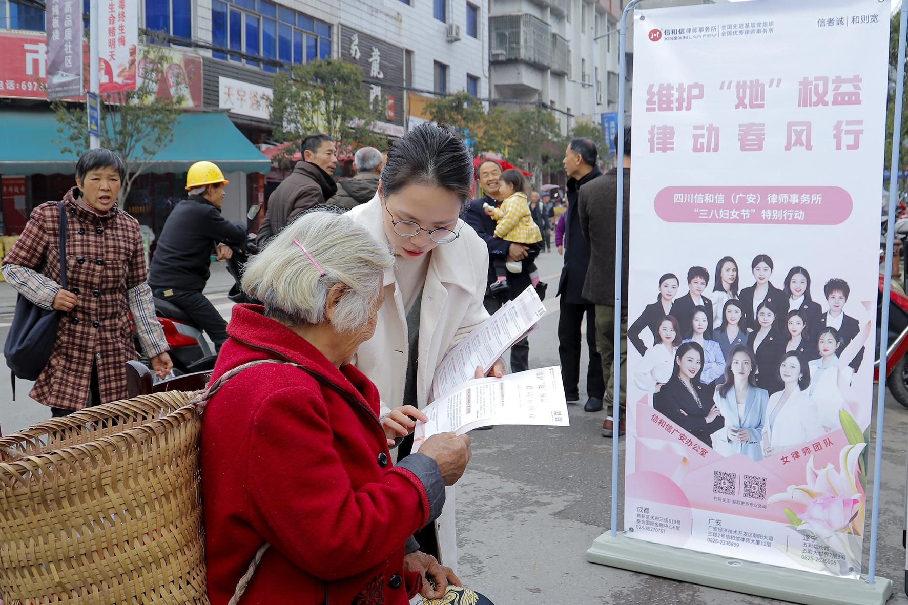 3月7日,四川省廣安市前鋒區(qū)婦聯(lián)聯(lián)合政法單位利用鄉(xiāng)鎮(zhèn)趕場日開展“三八”維權(quán)周法治宣傳活動。
