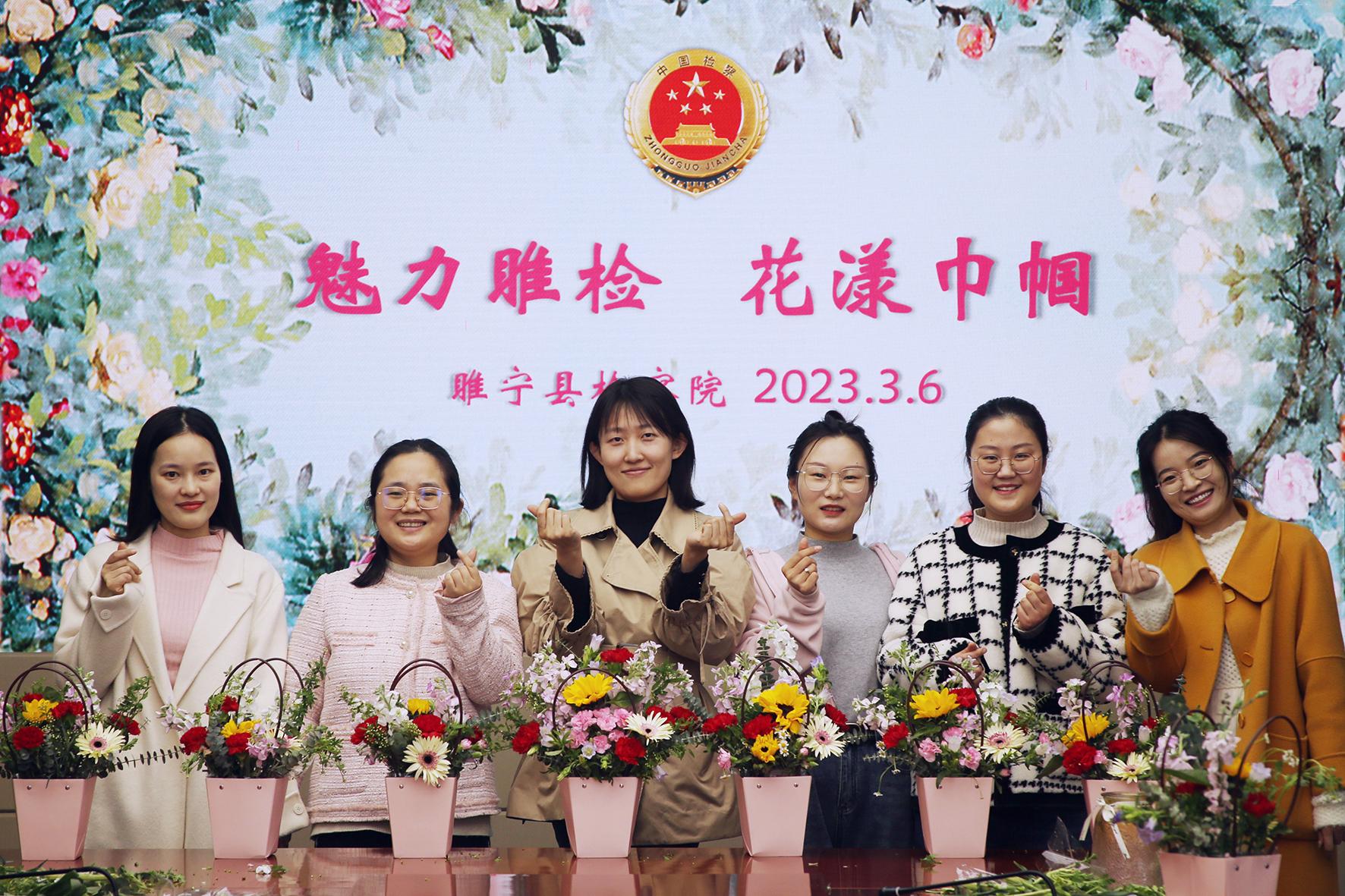 為慶?!叭恕眹H婦女節(jié),3月6日,江蘇省睢寧縣檢察院組織全體女干警開展插花花藝活動。
