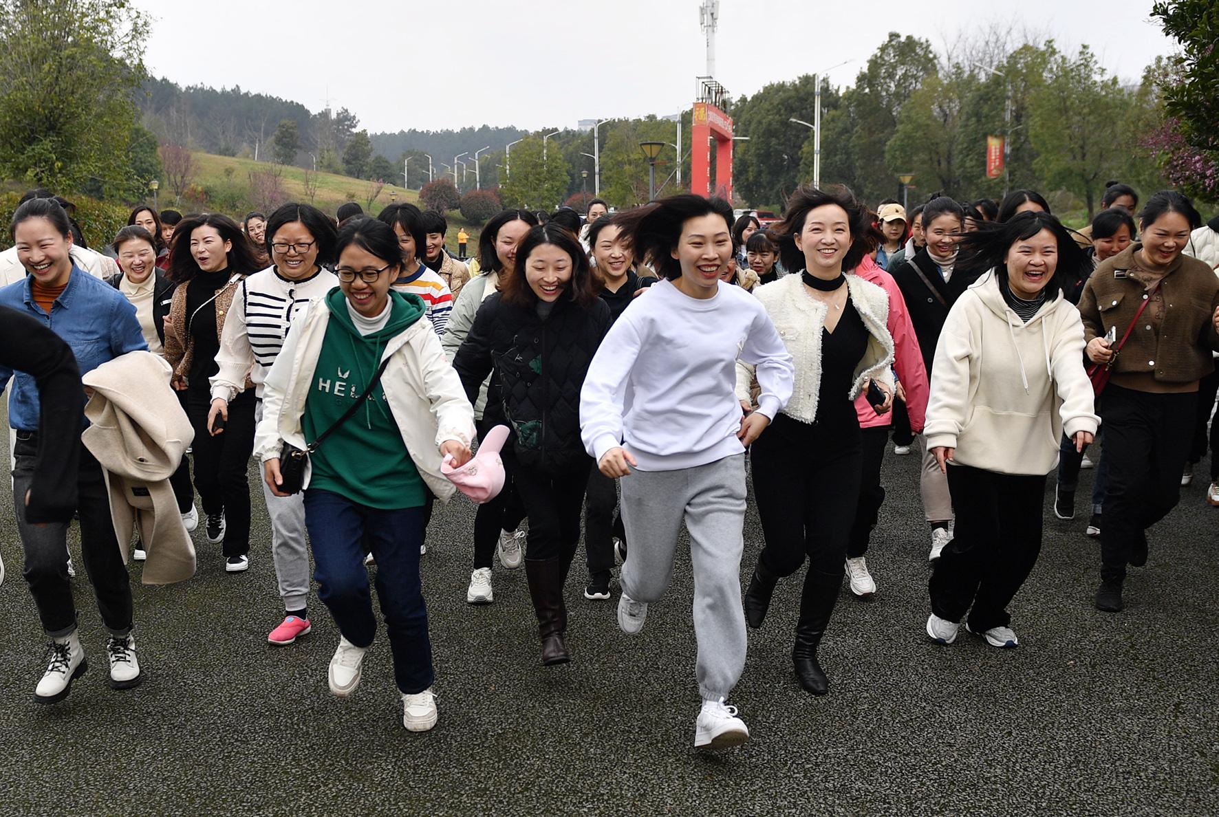 3月8日,貴州省遵義市公安局組織女職工開展徒步比賽活動。