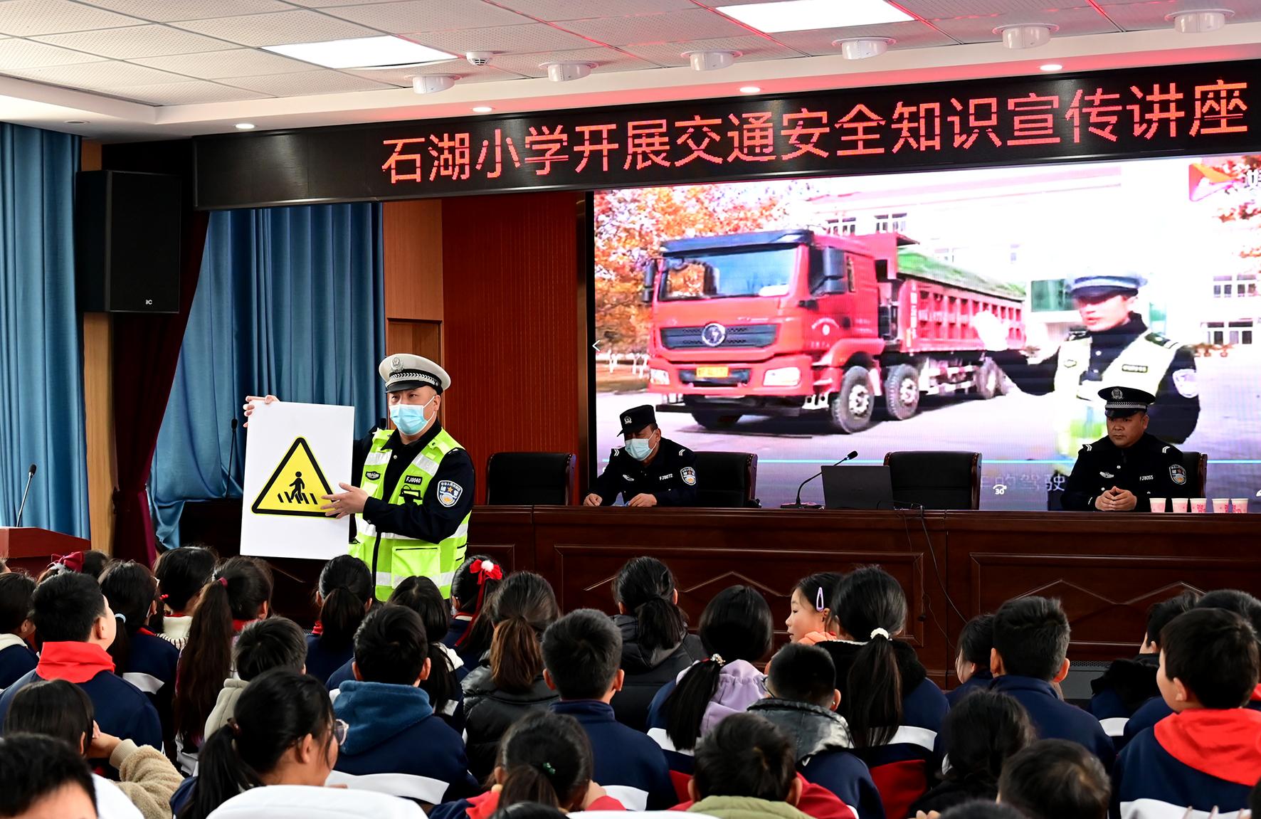 3月27日,安徽省固鎮(zhèn)縣公安局交管大隊(duì)民警在石湖小學(xué)為學(xué)生們上安全防范課。