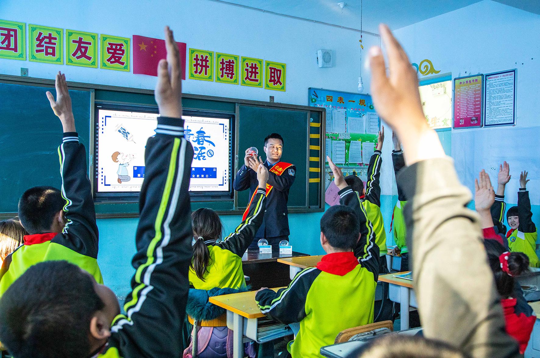 3月27日,甘肅省東鄉(xiāng)縣公安局鎖南派出所民輔警到轄區(qū)學(xué)校開(kāi)展護(hù)苗行動(dòng),從反恐防暴、校園欺凌、交通安全、防范詐騙、禁毒禁賭等五個(gè)方面普及日常安全知識(shí)。