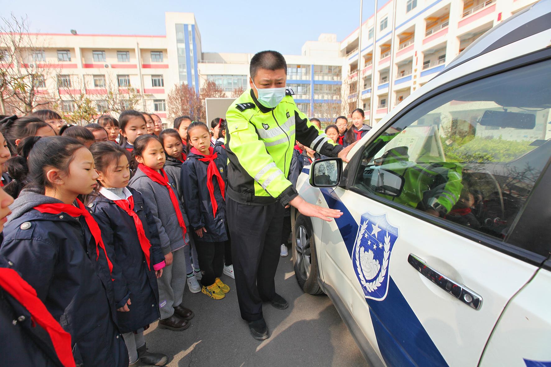 3月27日,安徽省巢湖市公安局交警大隊(duì)輔警走進(jìn)胡崗小學(xué),開(kāi)展交通安全教育。