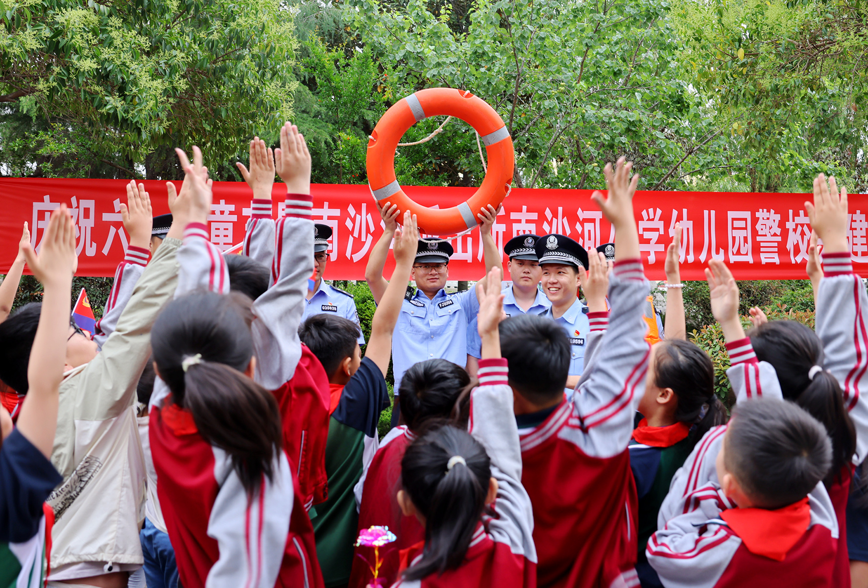 5月26日,山東省滕州市公安局南沙河派出所聯(lián)合巡特警大隊(duì)及南沙河中心小學(xué)、中心幼兒園共同舉辦“快樂成長(zhǎng) 平安‘童’行”萌娃進(jìn)警營(yíng)活動(dòng)。