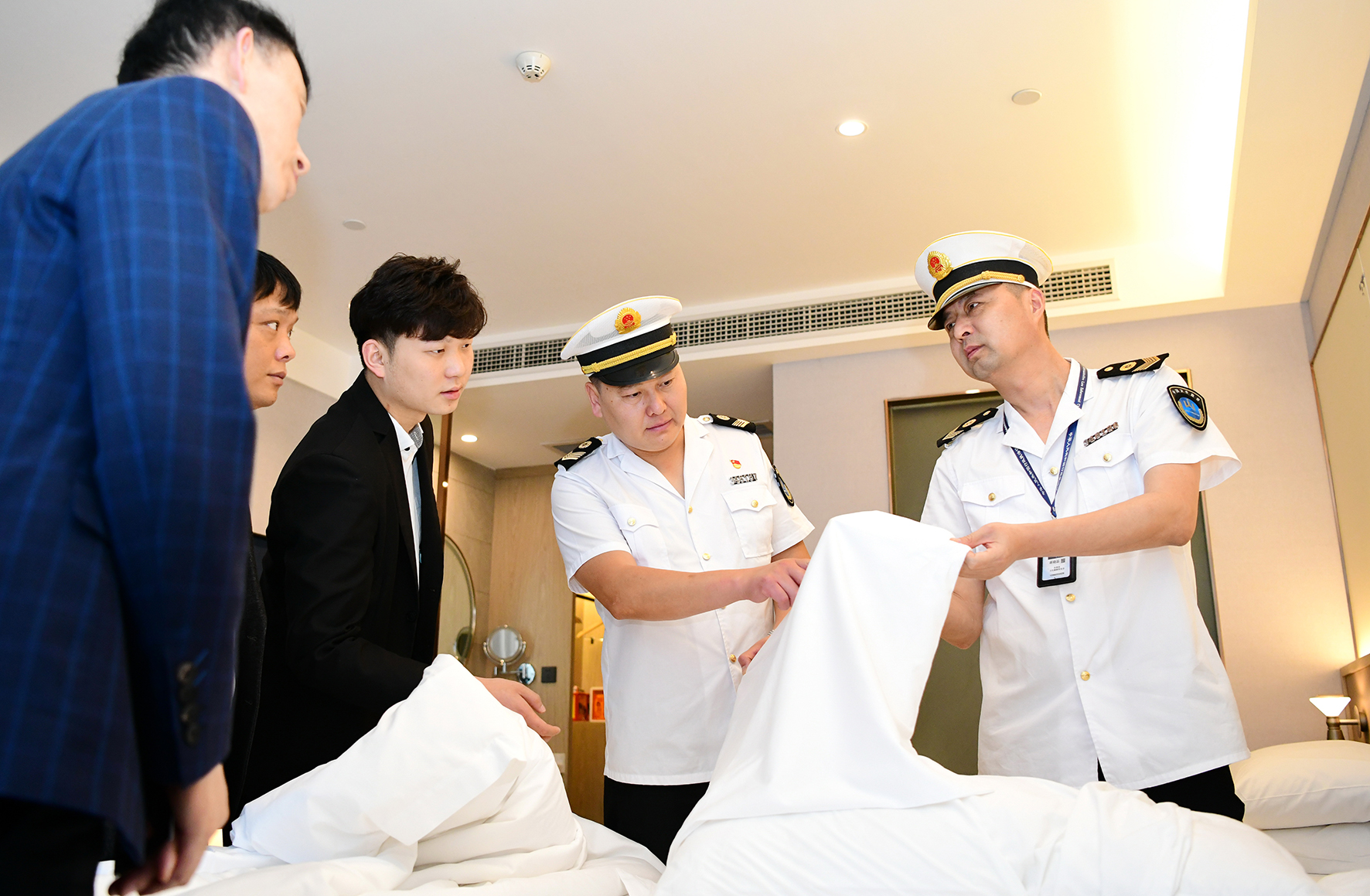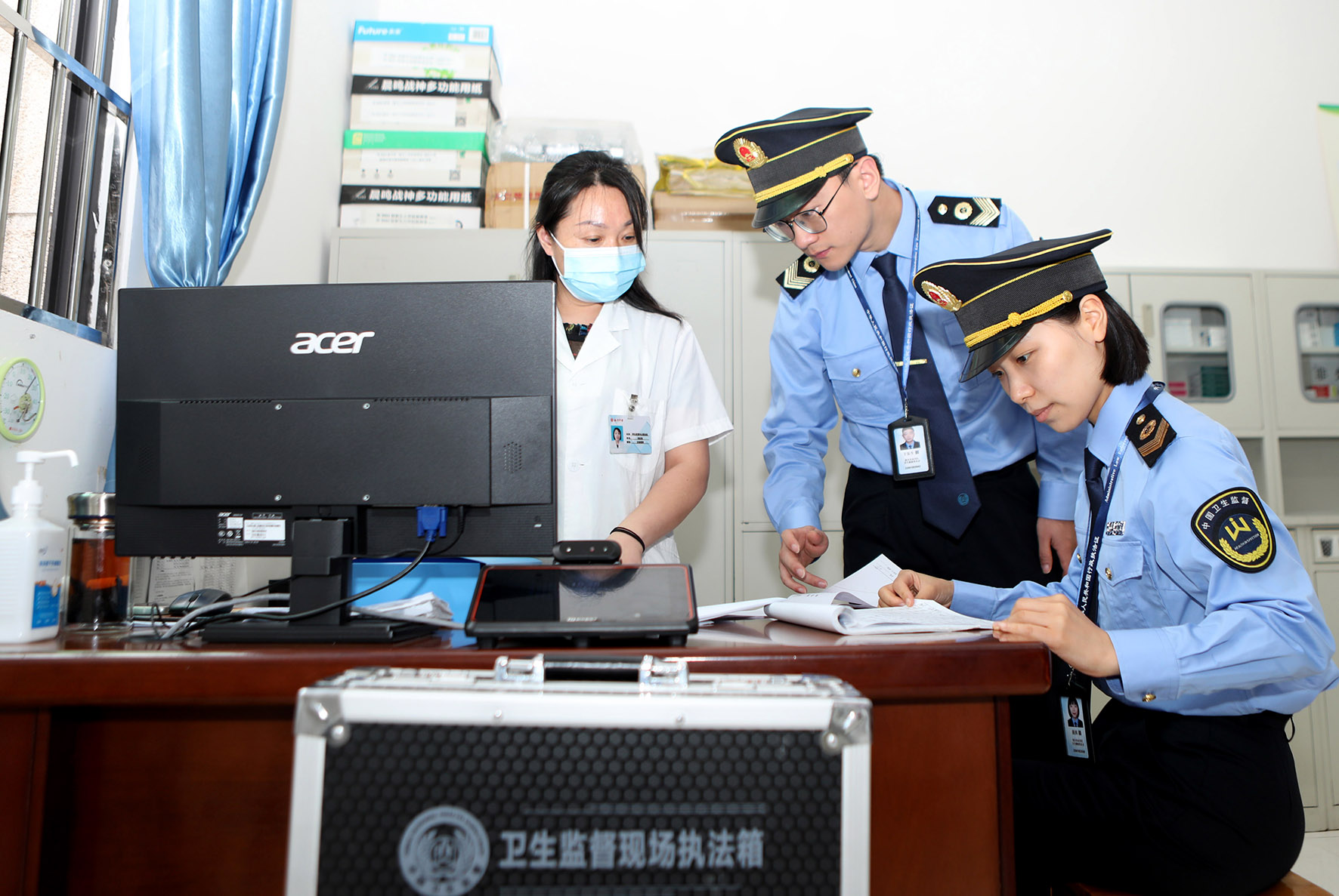 6月5日,安徽省阜南縣衛(wèi)生執(zhí)法人員對(duì)高考生入住賓館進(jìn)行監(jiān)督檢查。