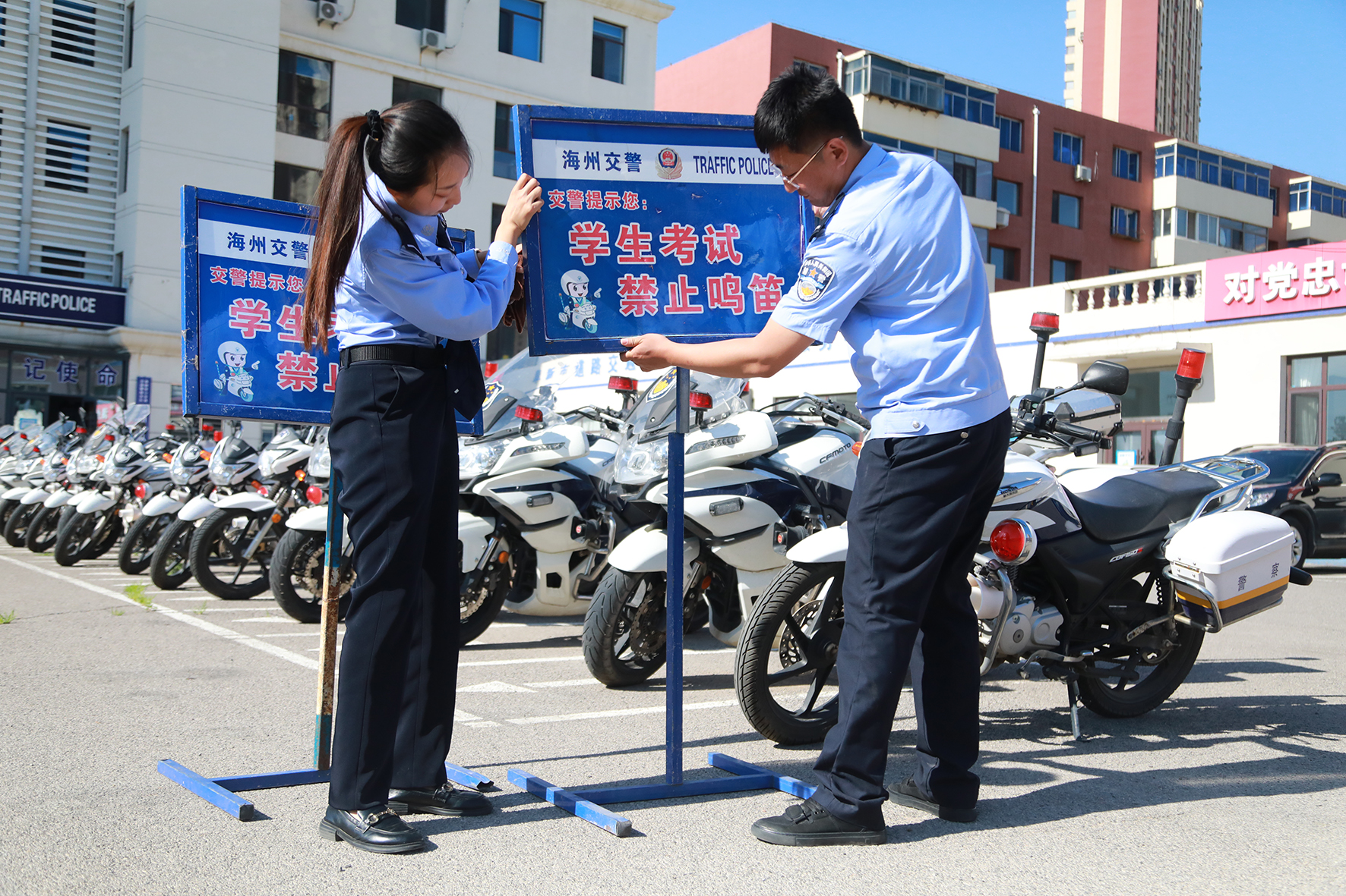 6月5日,遼寧省阜新市公安局交通警察支隊(duì)細(xì)河大隊(duì)民警提前深入轄區(qū)考點(diǎn),排查道路隱患,設(shè)置高考服務(wù)提示牌。