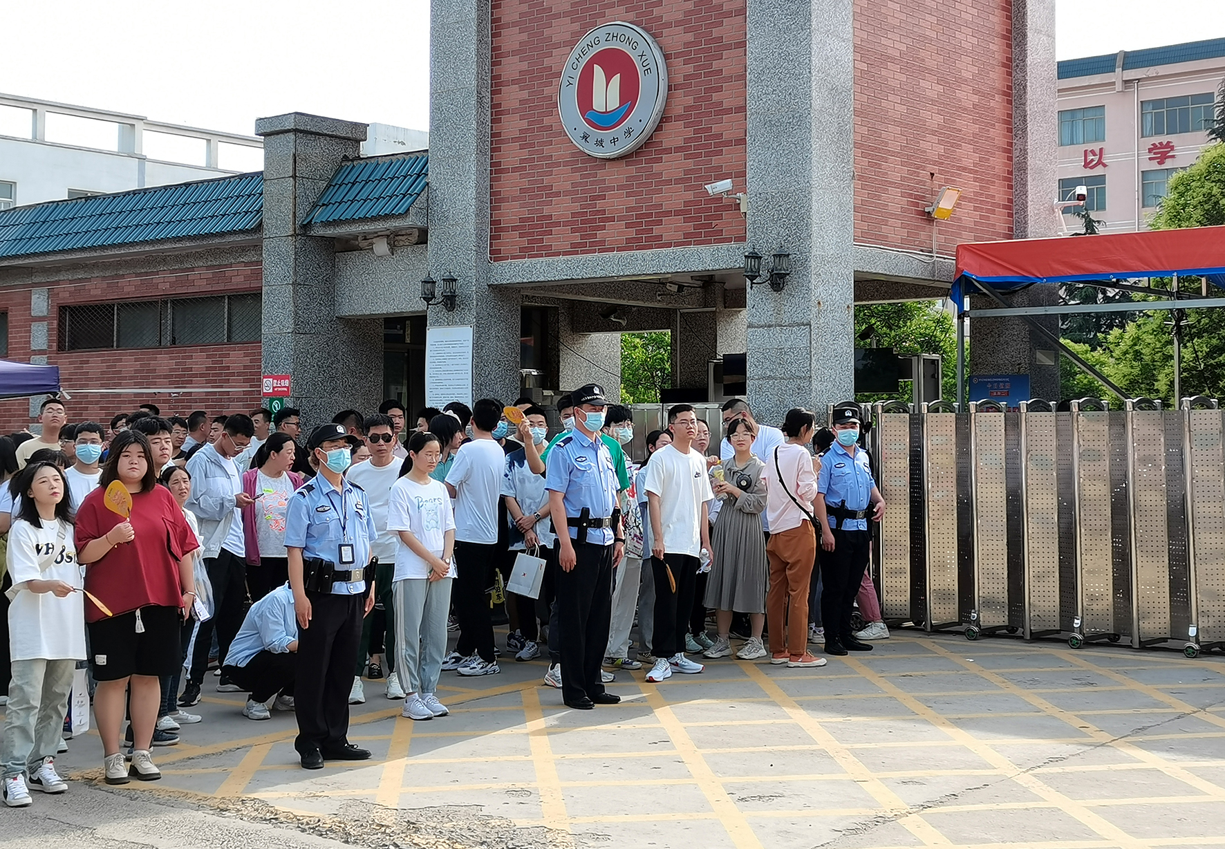 6月7日,貴州省赤水市公安局民警在第三中學(xué)考點(diǎn)現(xiàn)場(chǎng)維持秩序。