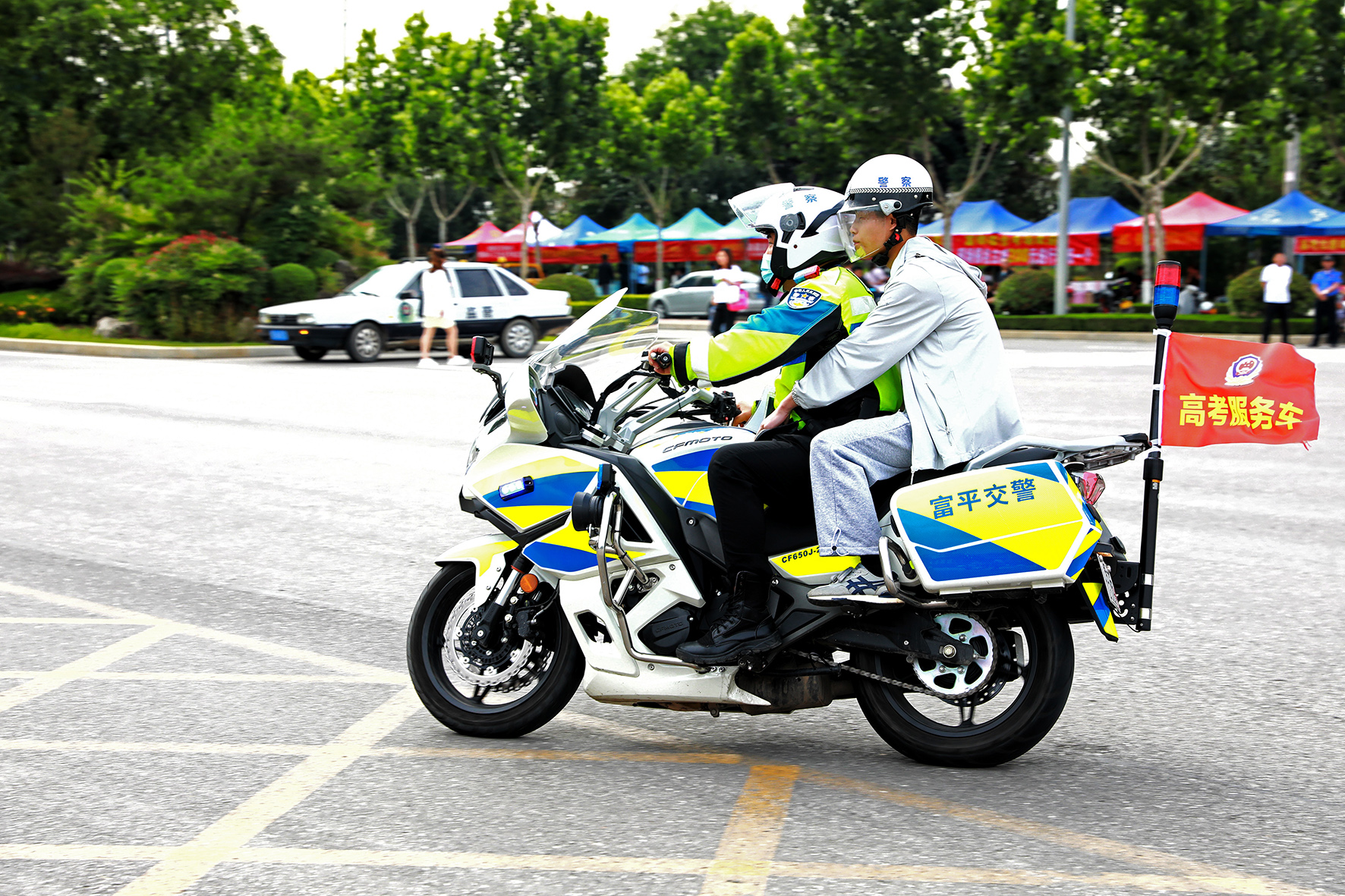 6月7日,陜西省富平縣公安局110接到報(bào)警求助后,交警鐵騎隊(duì)隊(duì)員僅用2分半鐘便將一名考生安全順利送達(dá)兩公里外的考點(diǎn)。