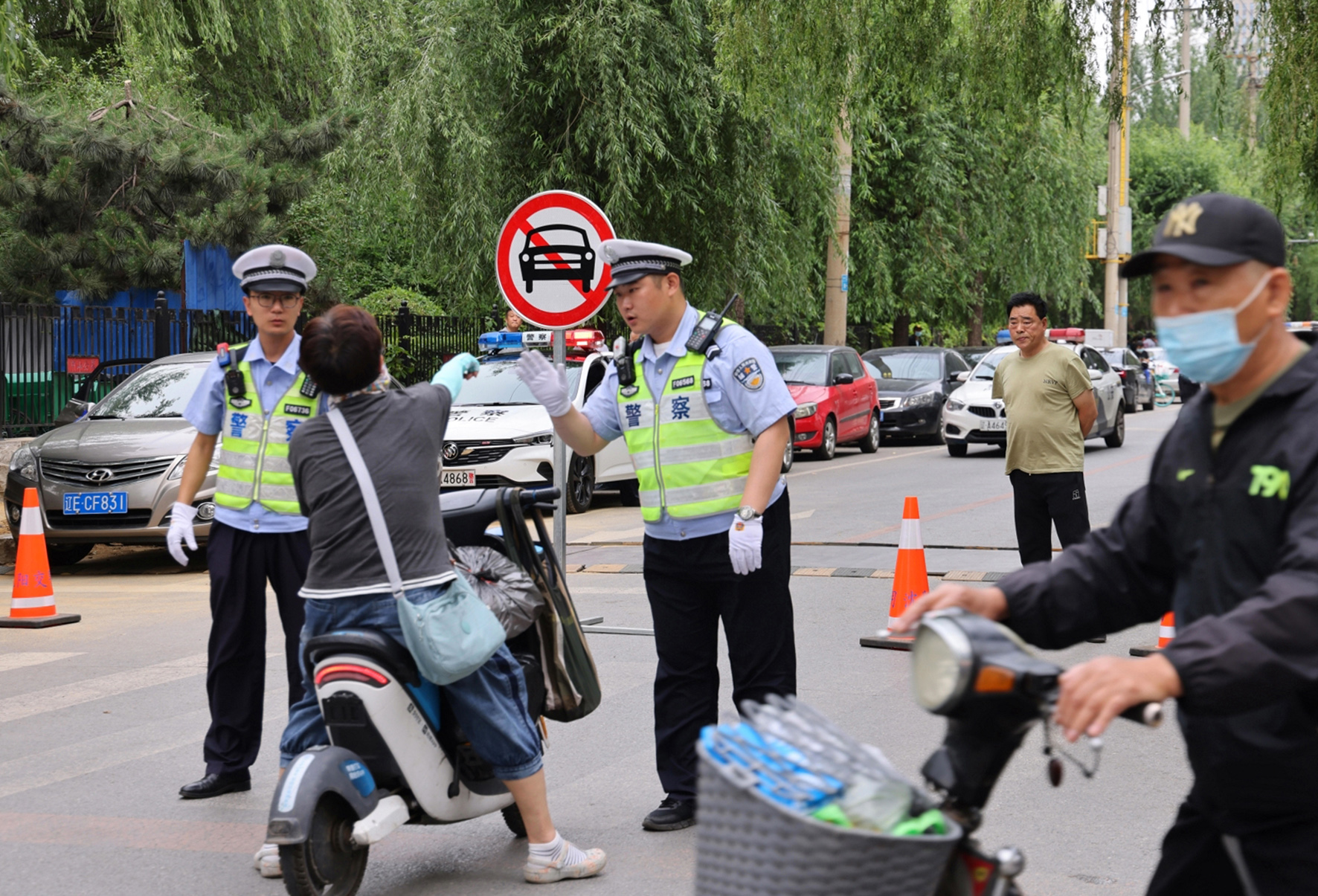 6月7日,遼寧省沈陽市公安局交通警察局民輔警在考點(diǎn)周邊疏導(dǎo)交通,服務(wù)考生。