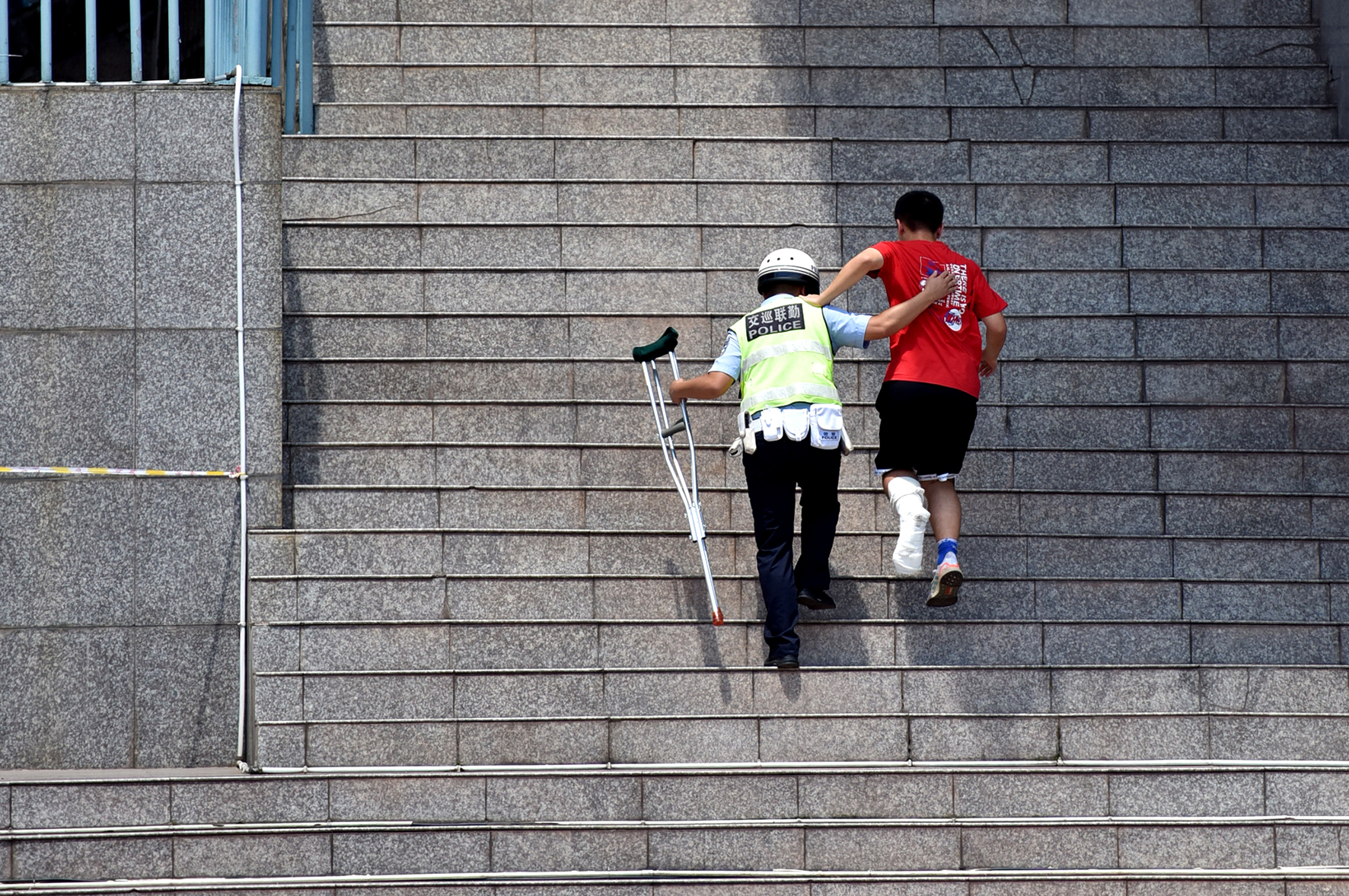 6月7日,江蘇省宜興市公安局民警護(hù)送行動(dòng)不便的考生進(jìn)入考點(diǎn)。