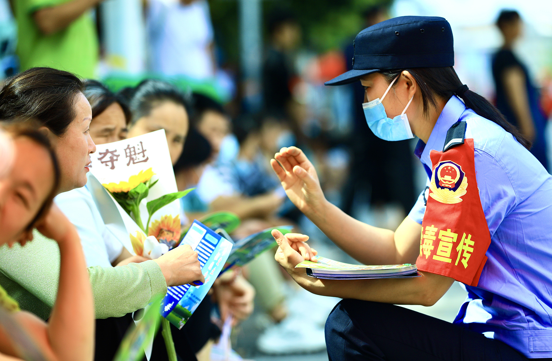 6月7日,安徽省亳州市公安局禁毒支隊(duì)民輔警到亳州一中考點(diǎn)開展禁毒宣傳活動(dòng)。