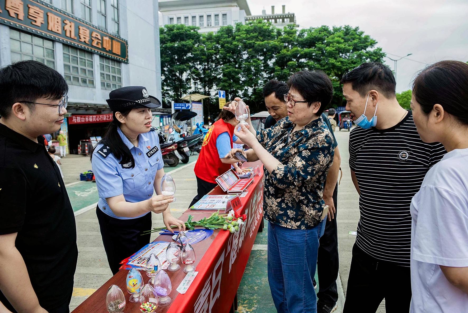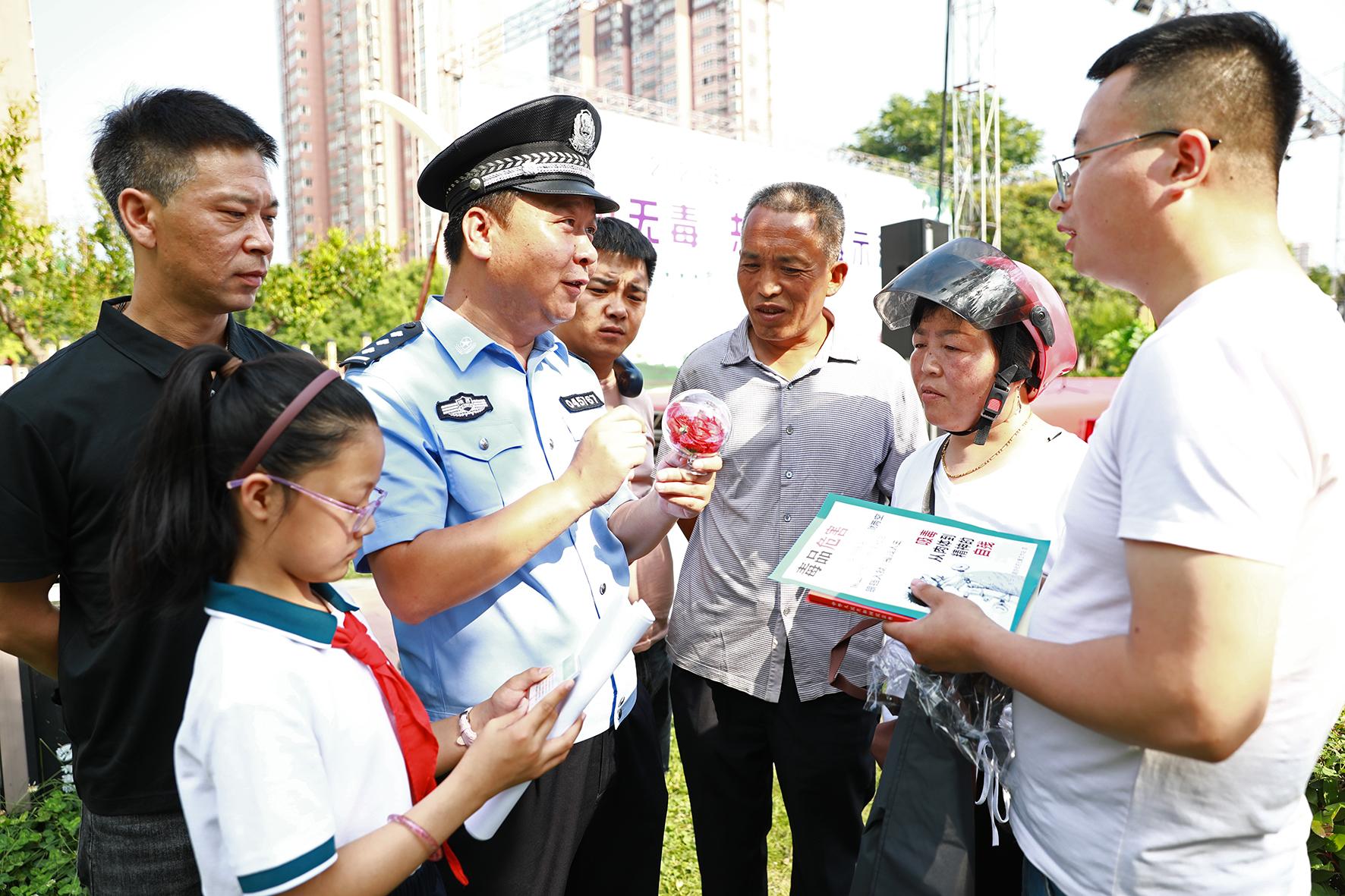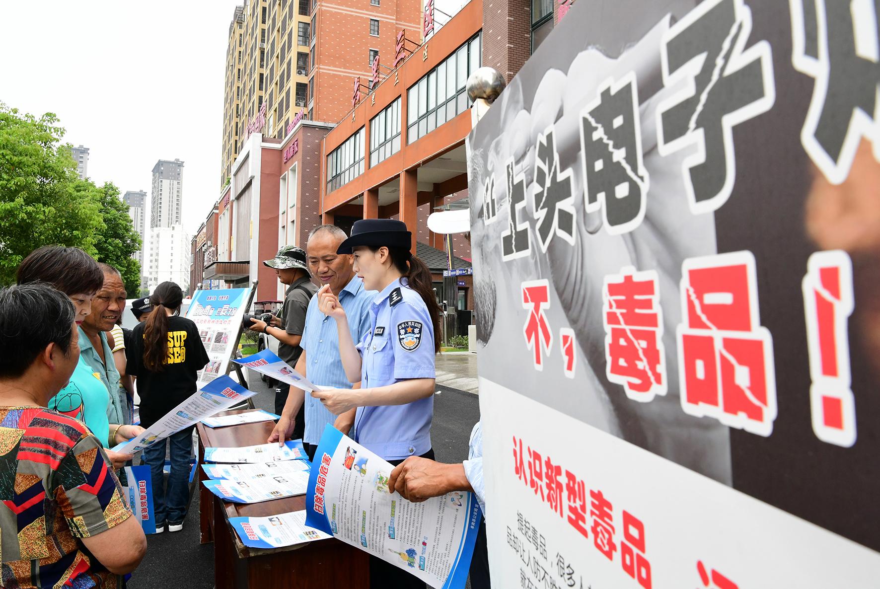6月26日,江西省共青城市公安局組織開展6·26禁毒宣傳教育活動,向群眾宣講禁毒基本知識。