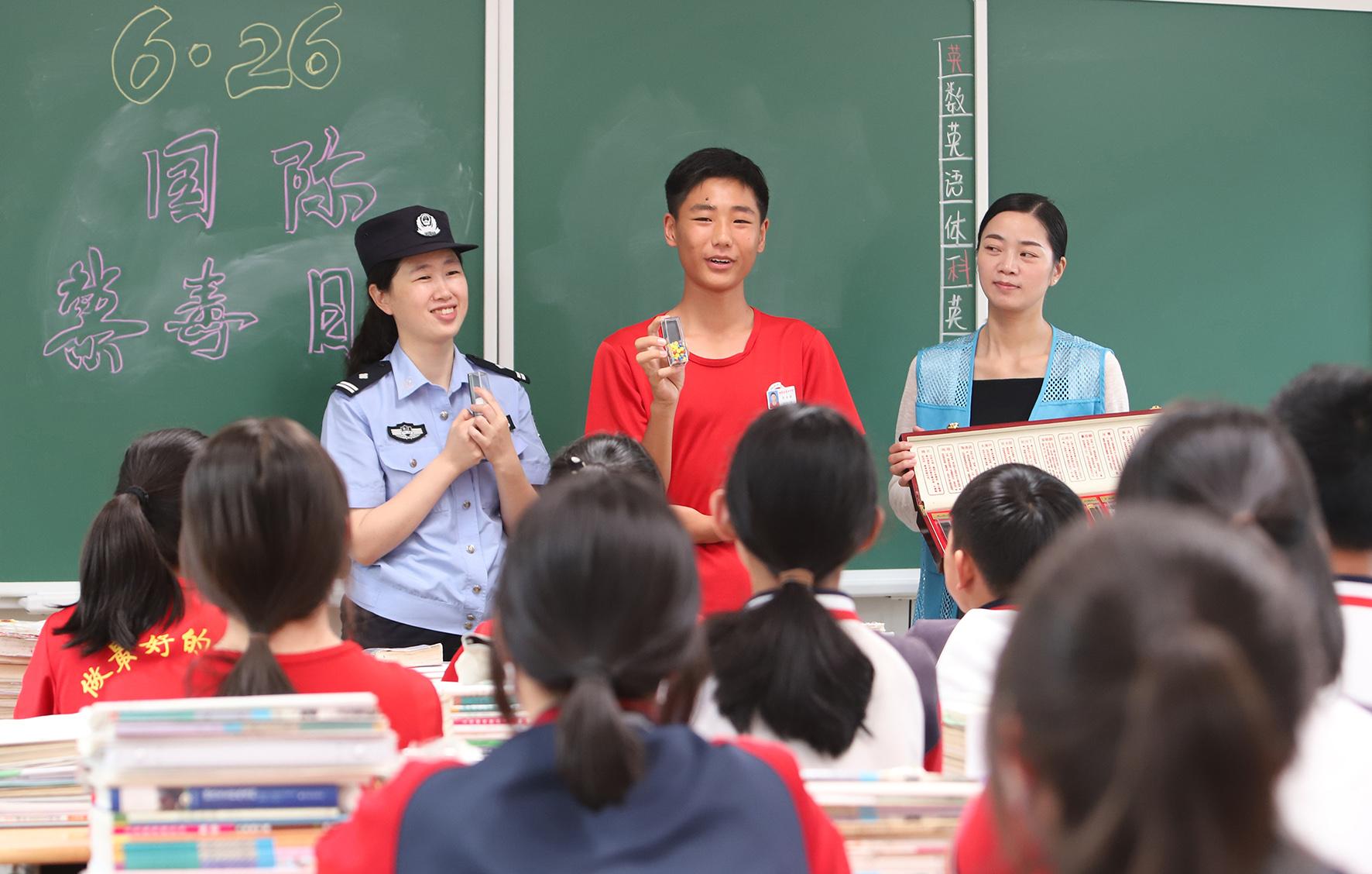 6月26日,浙江省臺州市路橋區(qū)螺洋派出所民警和禁毒社工在路橋四中對學生進行毒品危害、毒品識別、禁毒法規(guī)等的宣傳教育。