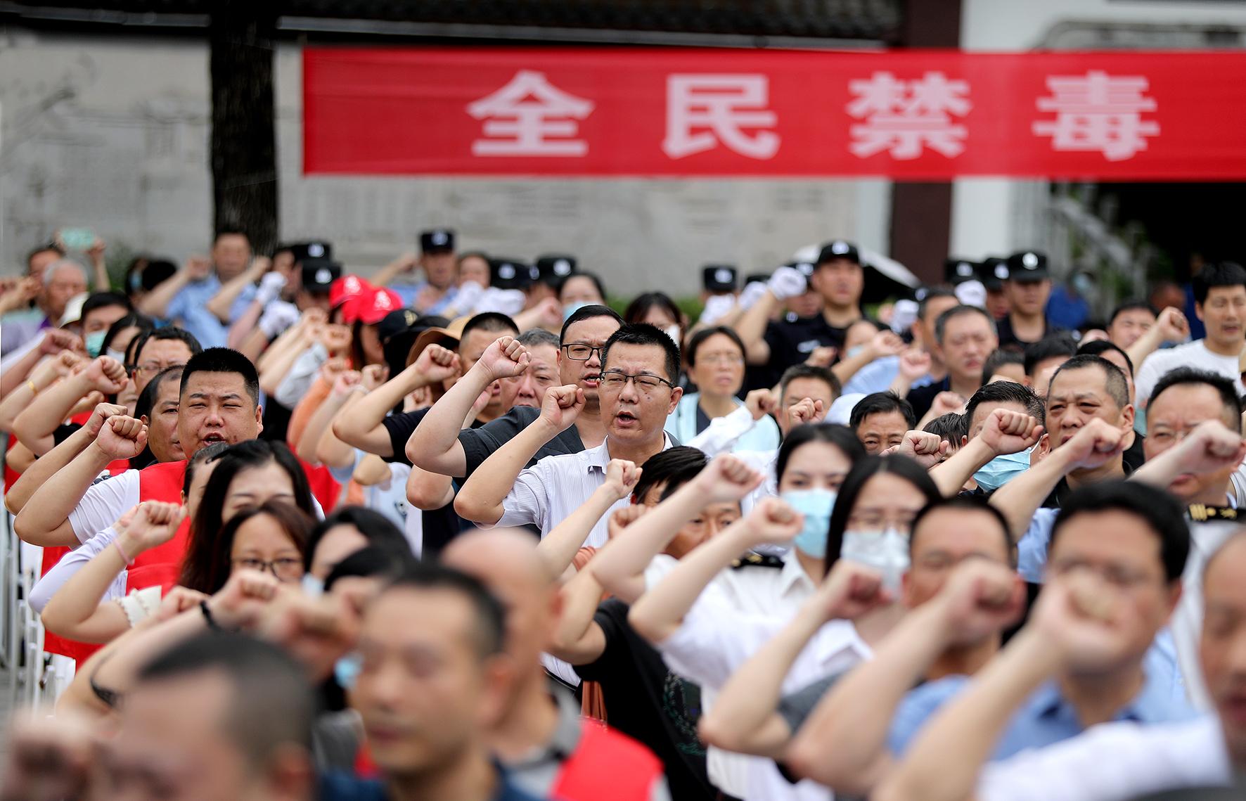 6月25日,湖北省荊門市禁毒委舉行“6·26”國際禁毒日集中宣傳暨銷毀毒品活動,300多名市民集體進行禁毒宣誓。