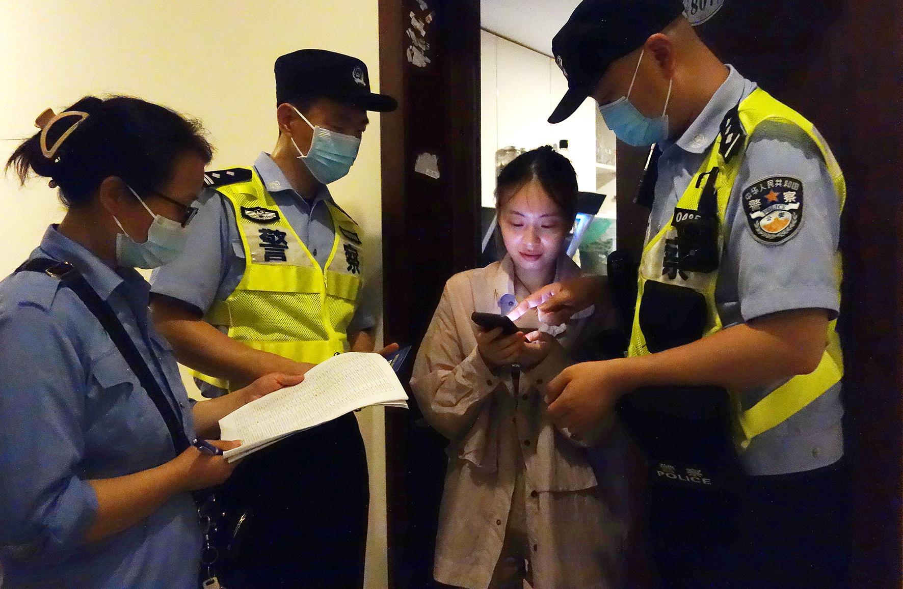 7月9日晚,安徽省馬鞍山市和縣公安局民警正在對歌廳、網(wǎng)吧等行業(yè)場所開展檢查,及時發(fā)現(xiàn)并消除治安隱患。