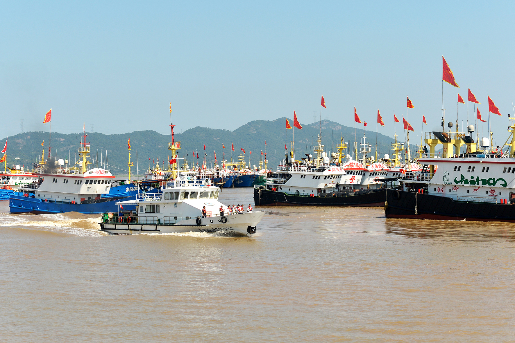 8月6日,浙江省臺(tái)州市三門縣公安局海防大隊(duì)民警和漁政、海事執(zhí)法人員駕駛執(zhí)法船在健跳漁港巡邏,為開漁保駕護(hù)航。