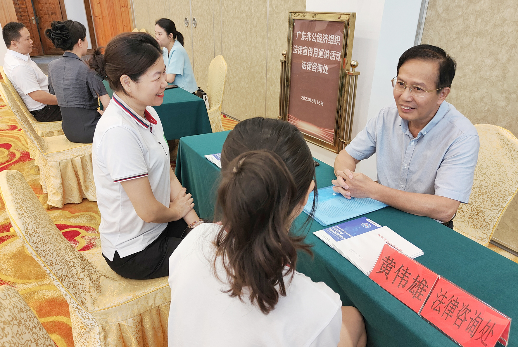 圖為廣東省民營企業(yè)律師服務(wù)團(tuán)律師現(xiàn)場為參加活動的民營企業(yè)提供法律服務(wù)。