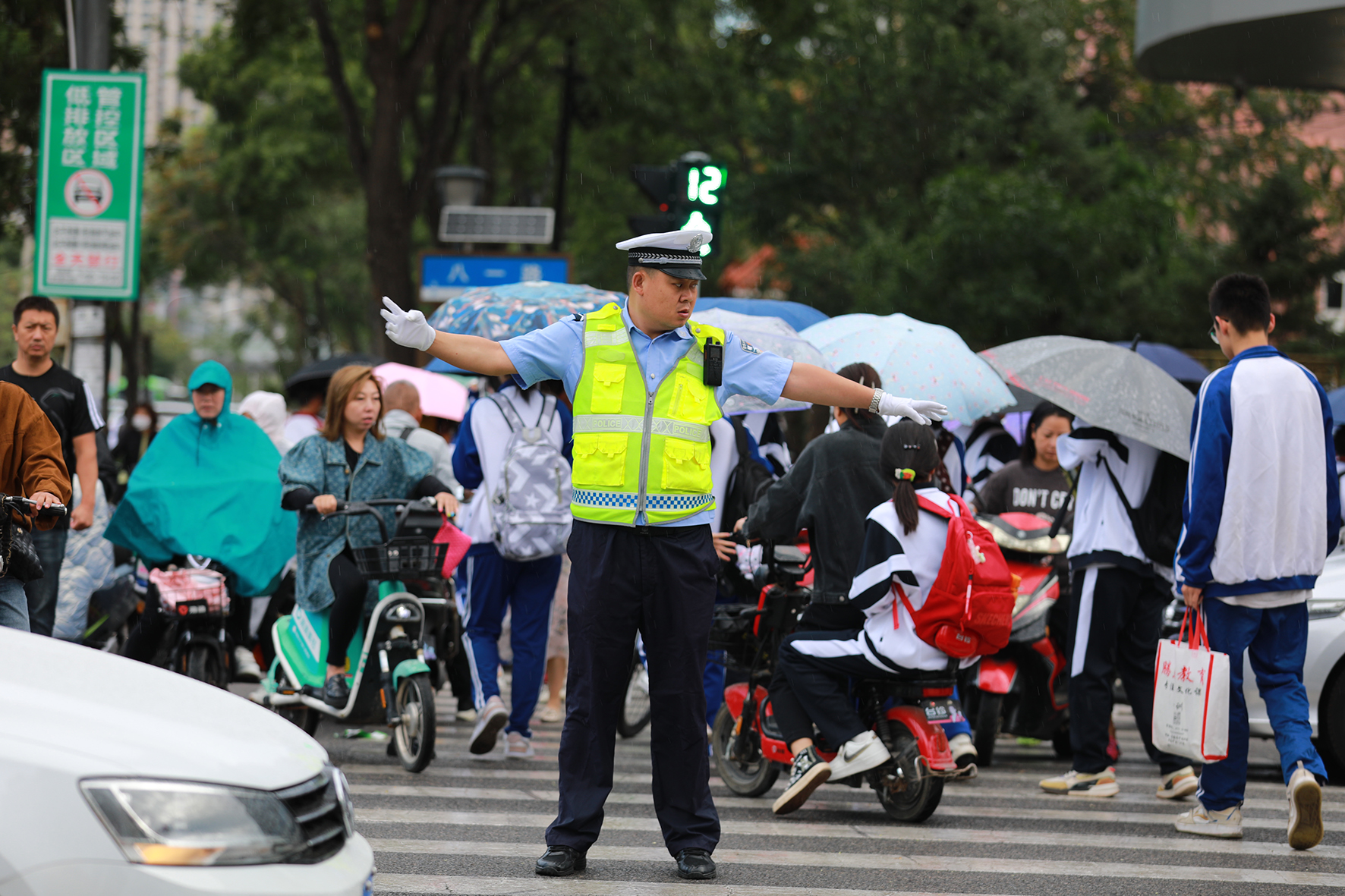 8月29日,遼寧省阜新市公安局交警支隊(duì)細(xì)河交警大隊(duì)民警在護(hù)學(xué)崗執(zhí)勤。