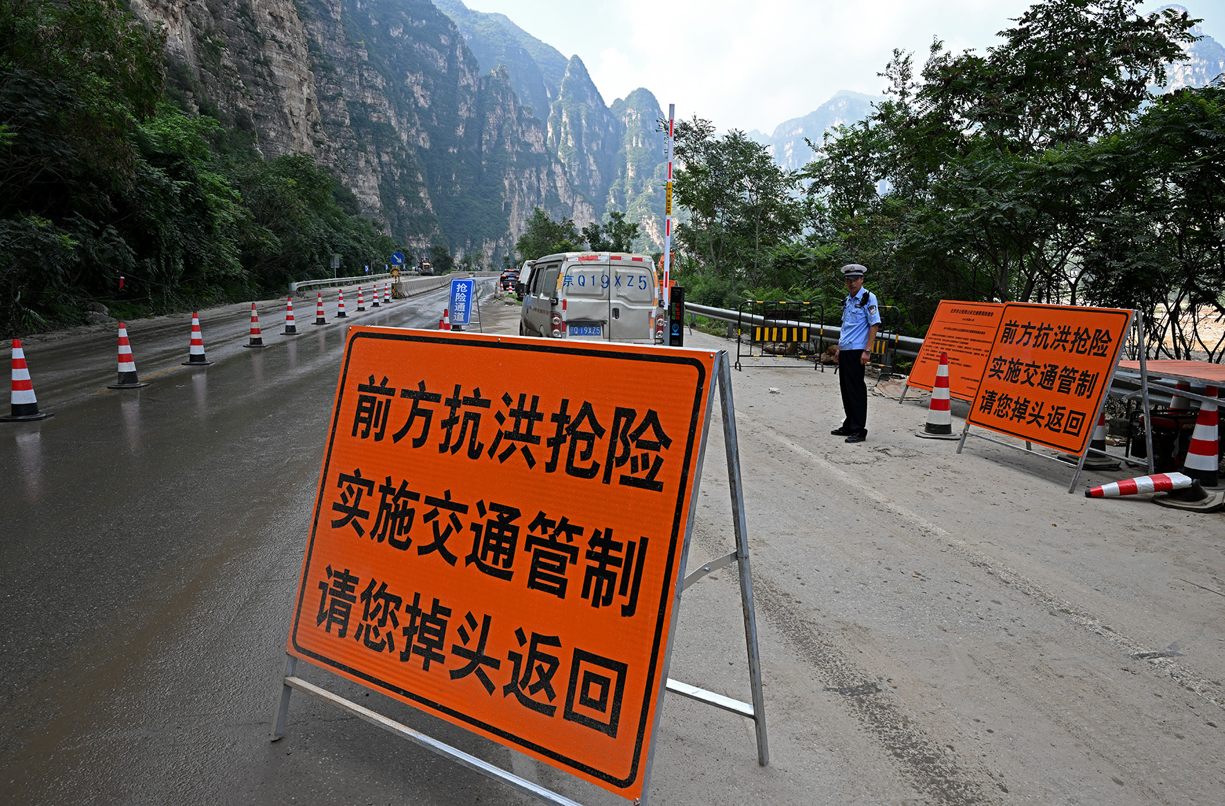 7月29日至8月2日,北京遭遇特大暴雨災害,房山區(qū)成為人員財產(chǎn)損失最嚴重的地區(qū)之一。張坊檢查崗是進入受災嚴重地區(qū)的第一道崗,在被損毀的道路尚未恢復通行能力前,只有救援相關(guān)車輛和當?shù)卮迕癖辉试S進入?!爱斍笆滓蝿帐潜WC救援保障力量的順暢進出?!比f寧大隊民警宗曉磊告訴記者,從7月28日汛前備勤起,他和同事們就堅守在這條進山通道,迄今已20多天。