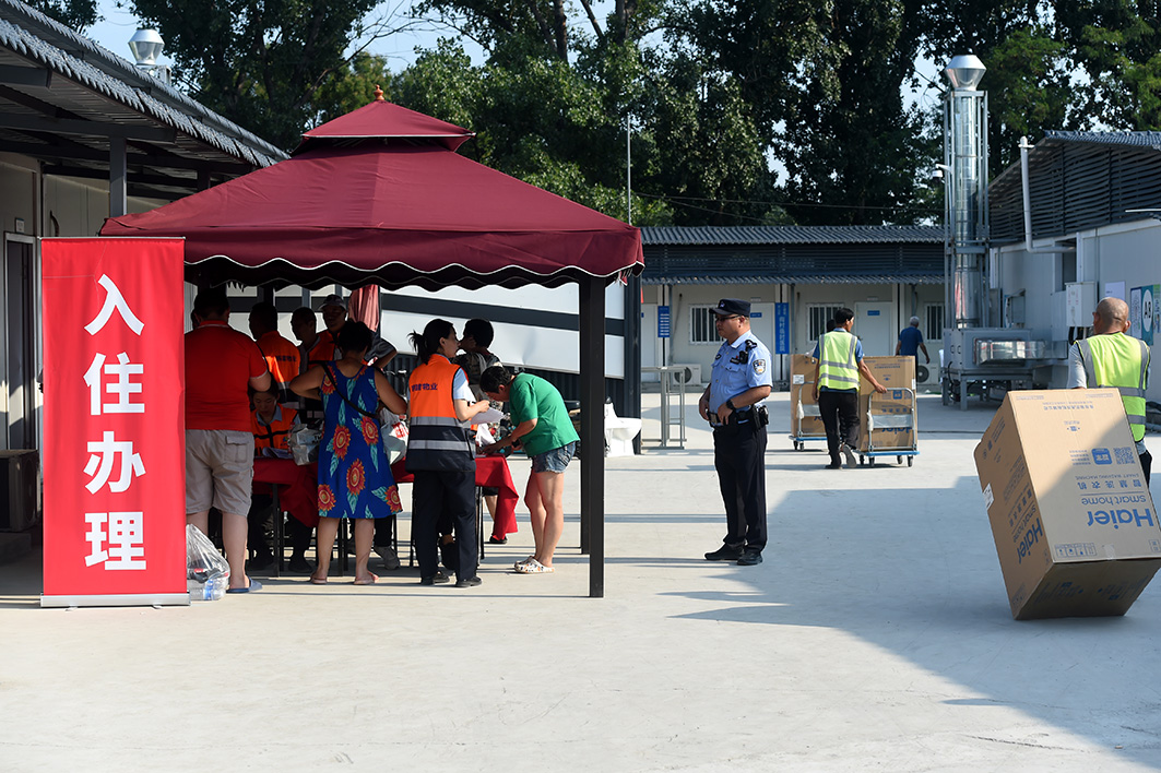 8月13日,房山區(qū)啟用閻村公寓西區(qū)作為集中安置點,同時設立了由7名民警值守的安置點警務站。