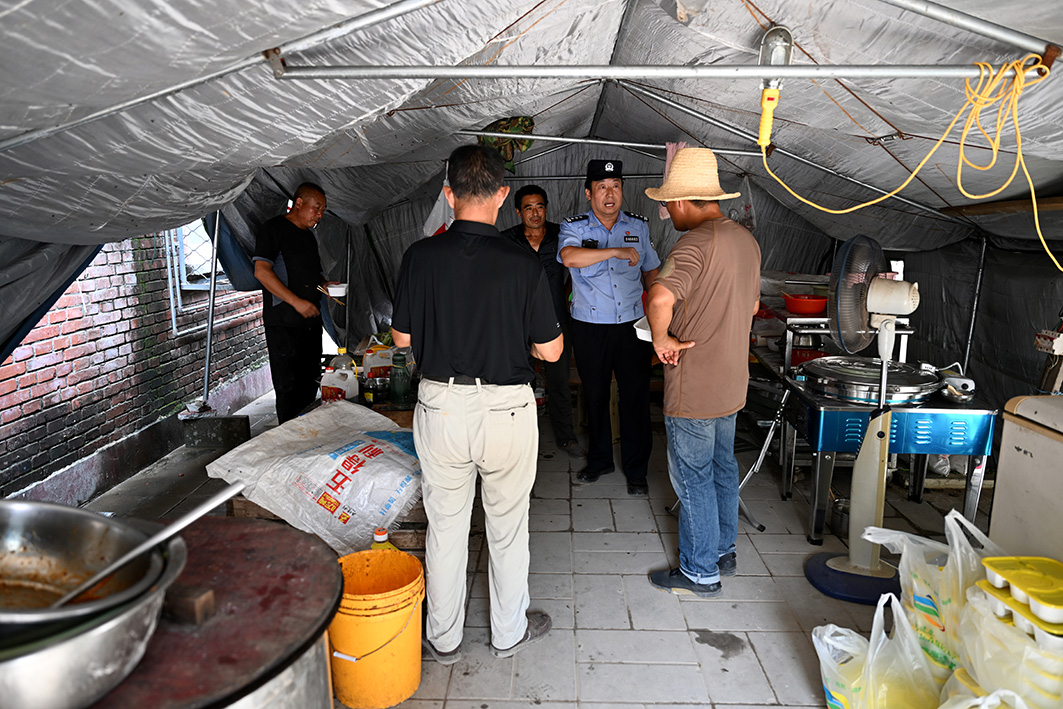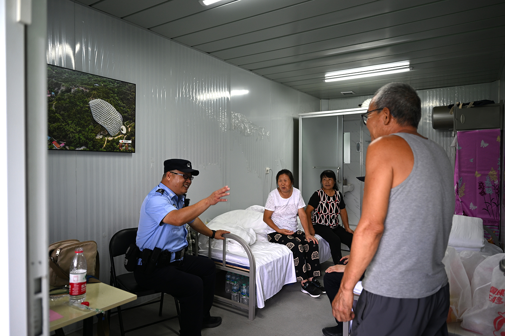 安置點警務站民警除每日定時巡邏,還要不時走訪受災群眾,了解情況。