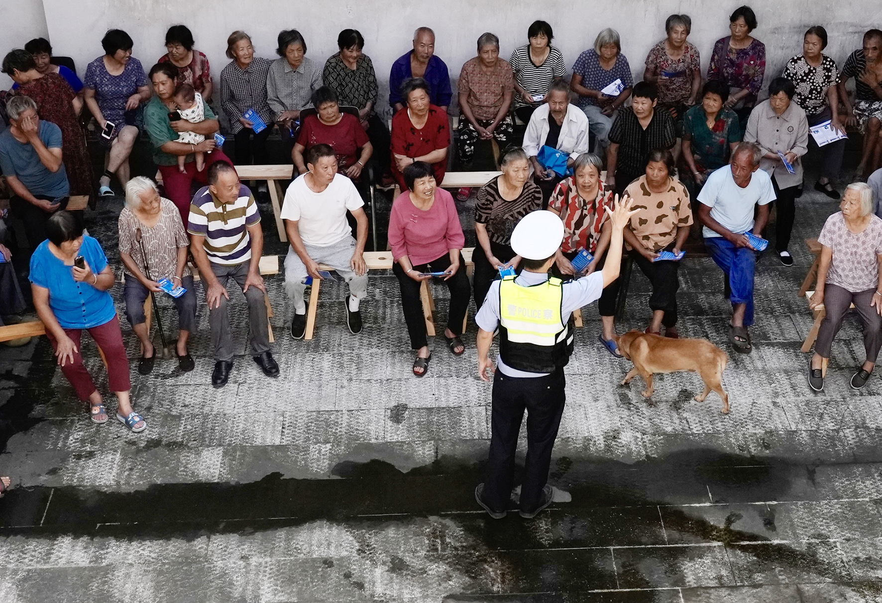在中秋國慶來臨之際,9月28日,浙江省臺州市天臺縣公安局交警大隊城西中隊民警走進福溪街道東臨村,開展以“老人出行安全 關(guān)系全家幸?!睘橹黝}的交通安全宣傳活動。