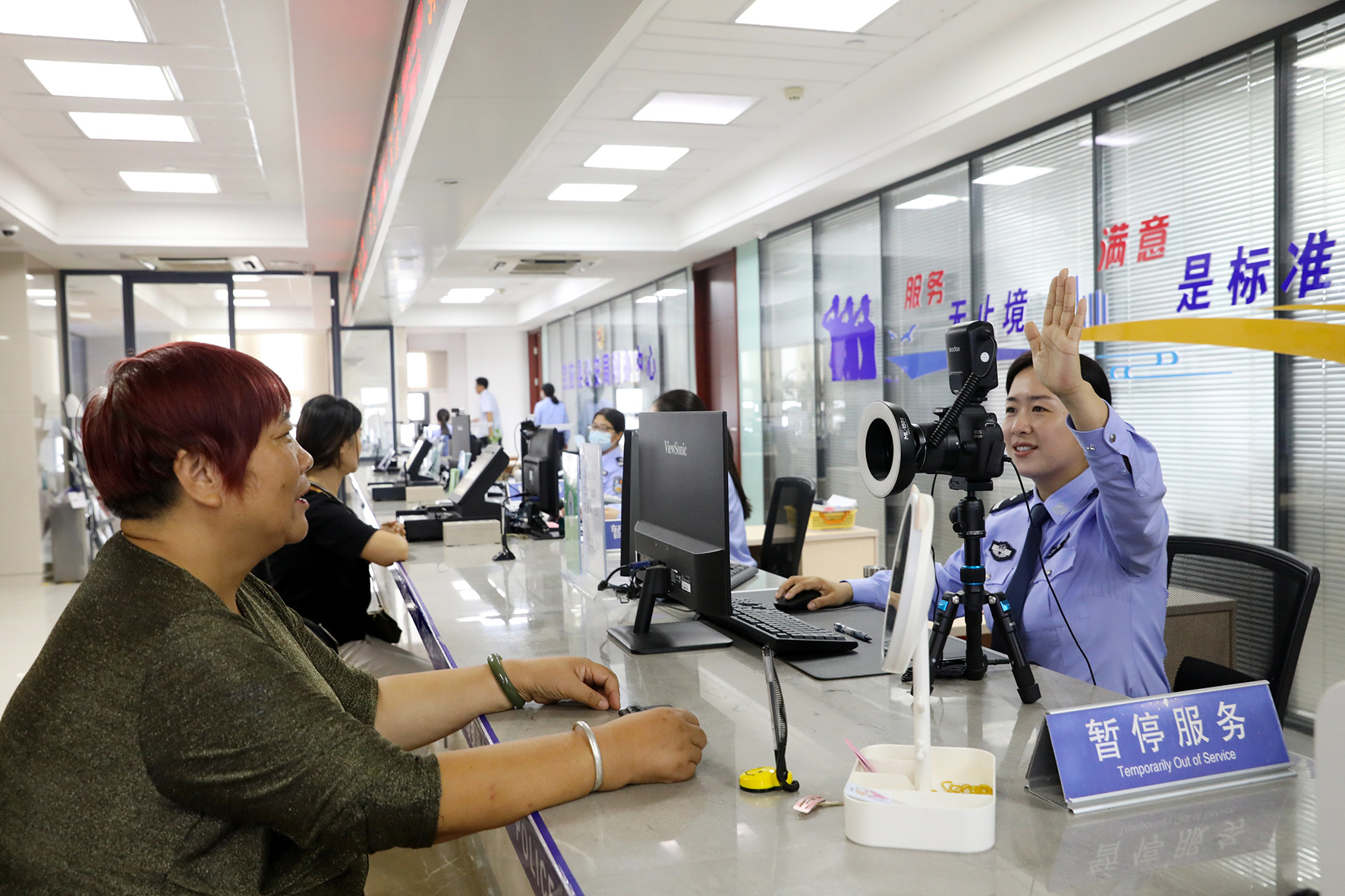 圖為9月27日,民警在給群眾采集照片辦理護照。