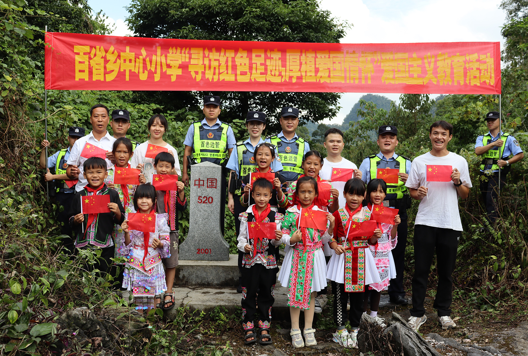 9月28日,廣西百色邊境管理支隊百省邊境派出所移民管理警察和百省鄉(xiāng)中心小學少數(shù)民族師生代表前往邊境開展“追尋紅色足跡 厚植愛國情懷”愛國主義教育活動。