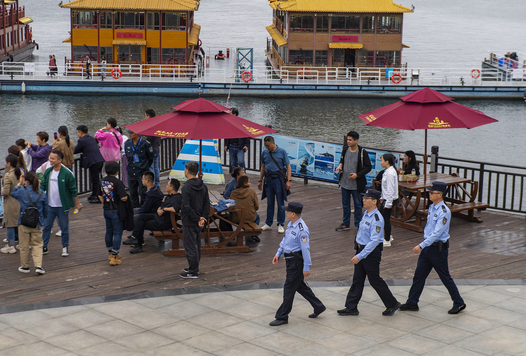 10月1日,長(zhǎng)江航運(yùn)公安局鎮(zhèn)江分局泰州派出所民警在泰州海軍艦艇文化園執(zhí)勤值守。