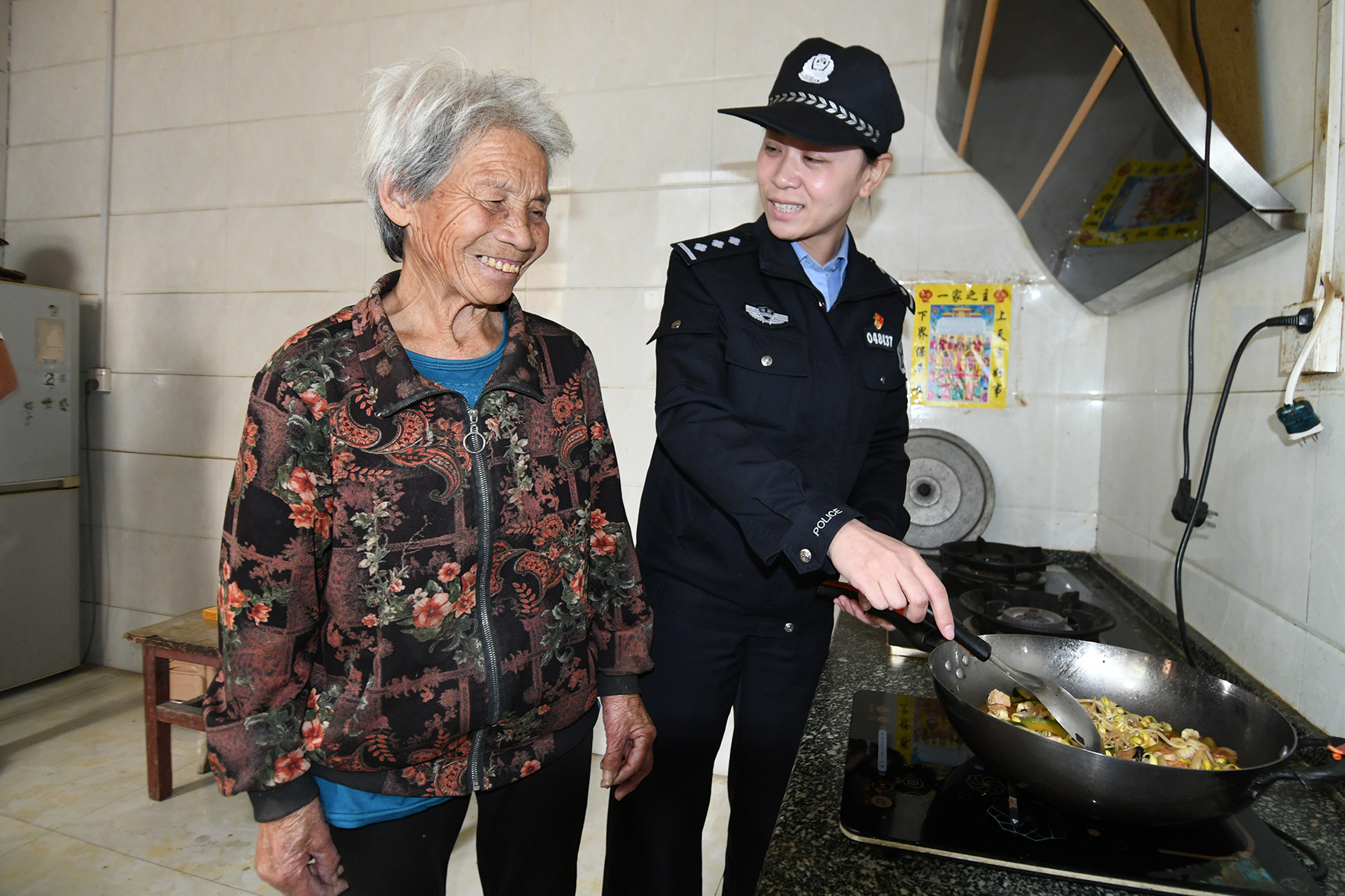 圖為12月19日,民警在余營(yíng)村走訪76歲的獨(dú)居老人劉秀英。