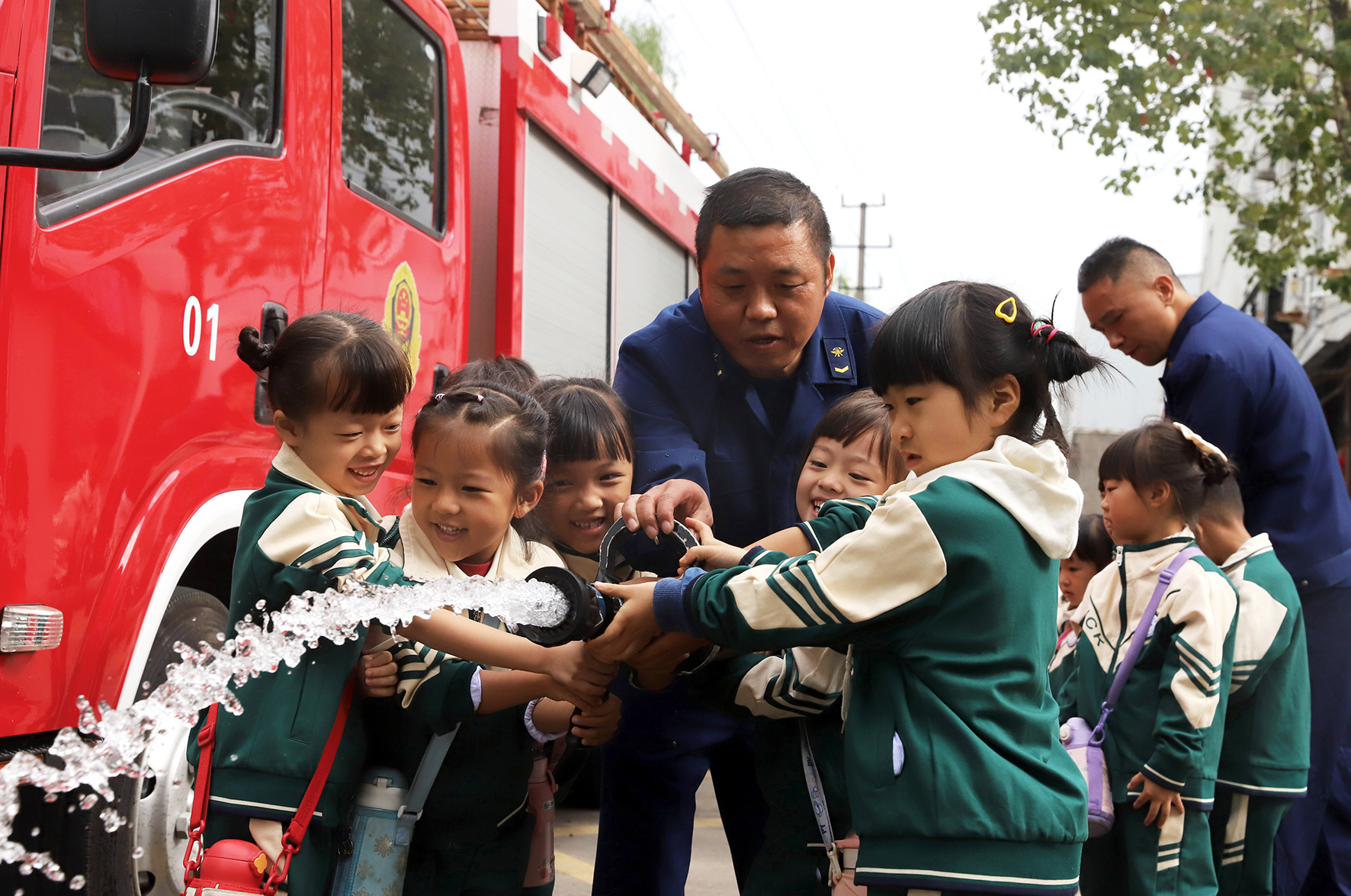 11月8日,浙江省臺州市路橋區(qū)橫街鎮(zhèn)中心幼兒園組織小朋友走進(jìn)當(dāng)?shù)叵谰仍?duì),讓小朋友零距離學(xué)習(xí)消防安全常識。