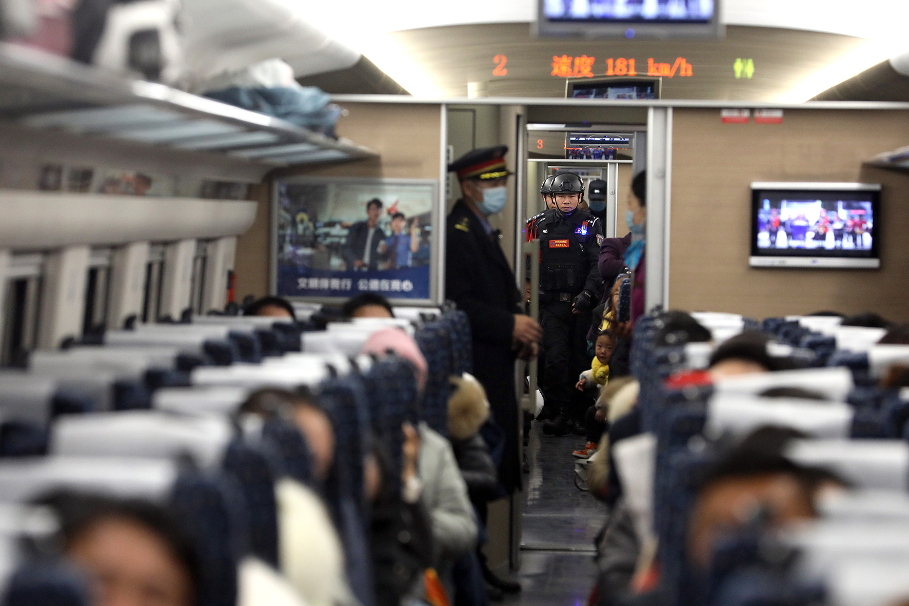 12月29日,在成都東開往茂縣的C6006次動車組列車上,一隊警容嚴整、精神飽滿的特警隊員格外引人注目,他們是成都鐵路公安處特警支隊民警,為旅客安全出行護航。
