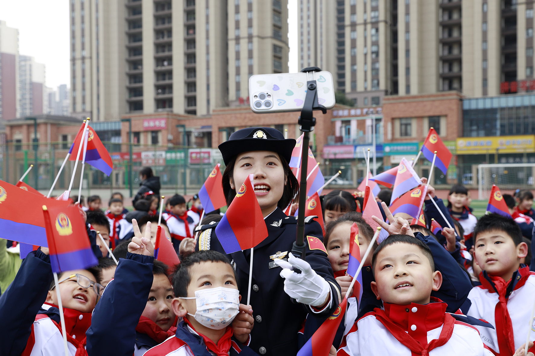 1月7日,山東省臨沂市郯城縣公安局開展我與警旗合影主題活動。