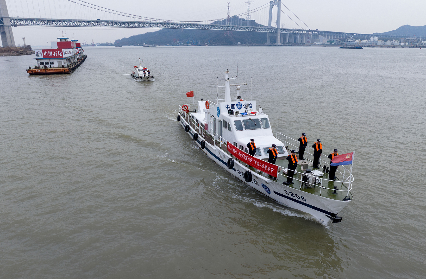 1月8日,鎮(zhèn)江出入境邊防檢查站民警聯(lián)合長江航運(yùn)公安局鎮(zhèn)江分局開展聯(lián)動水上巡邏、向警旗敬禮活動,以實(shí)際行動向中國人民警察節(jié)獻(xiàn)禮。