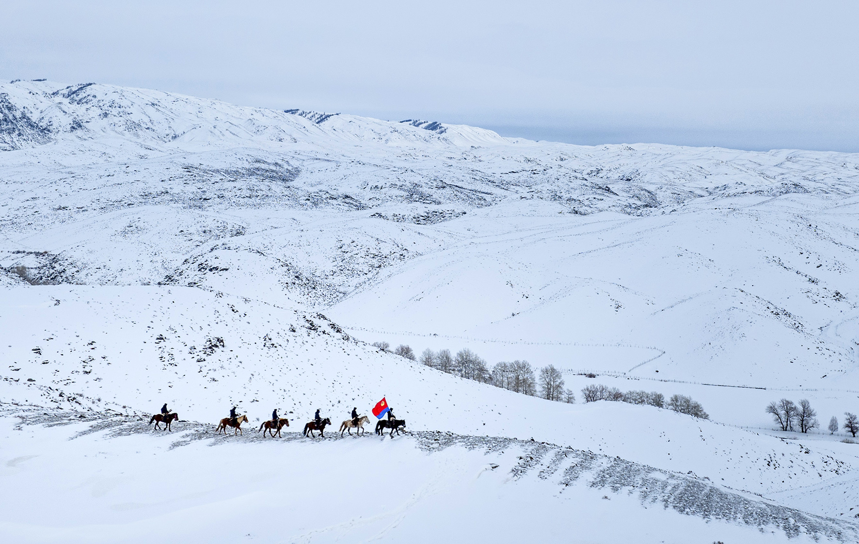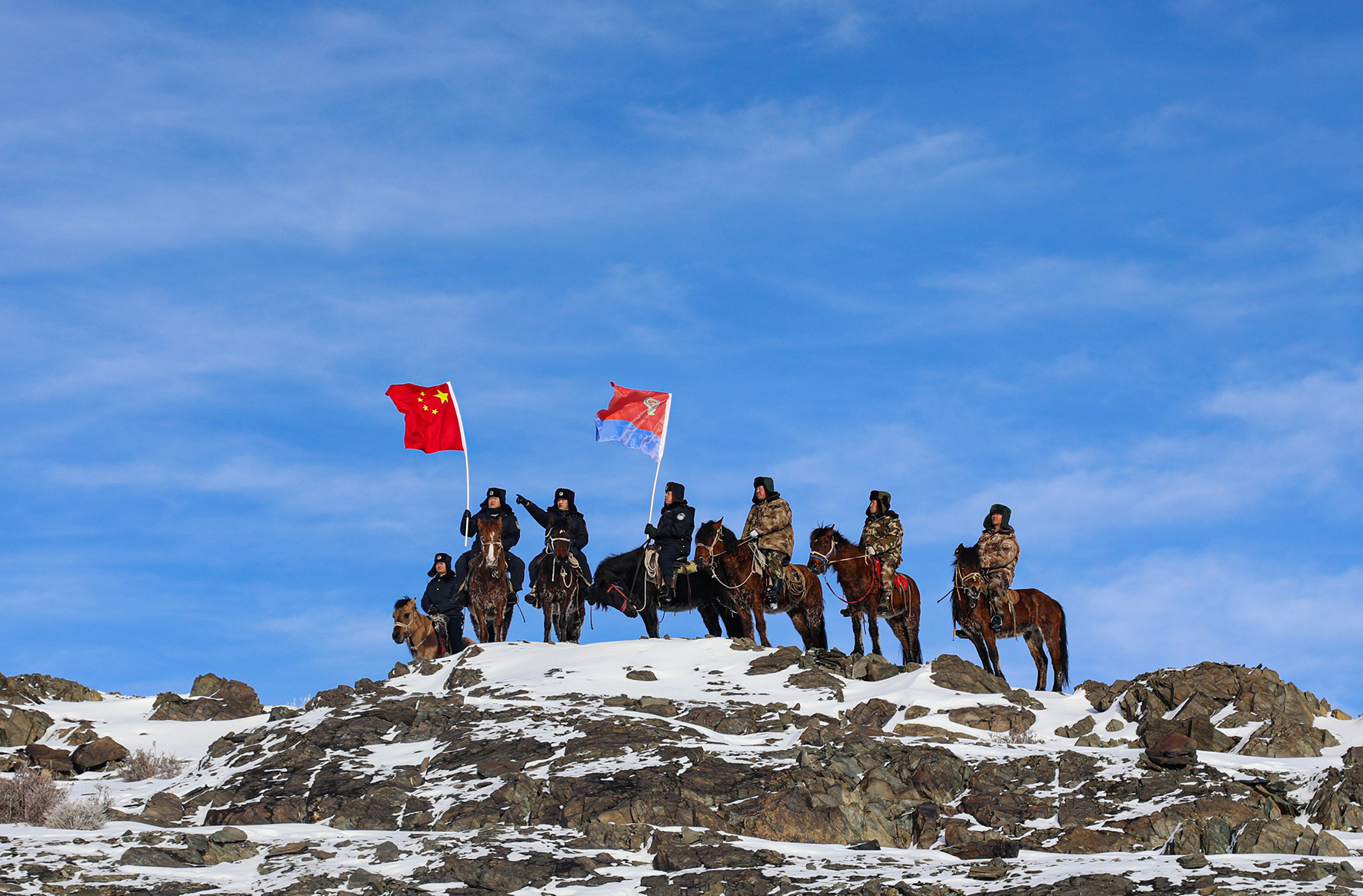 1月8日,新疆出入境邊防檢查總站阿勒泰邊境管理支隊查干郭勒邊境派出所移民管理警察與護邊員組建“馬背巡邏隊”,翻山越嶺深入邊境前沿開展巡邊踏查,喜迎中國人民警察節(jié)的到來。